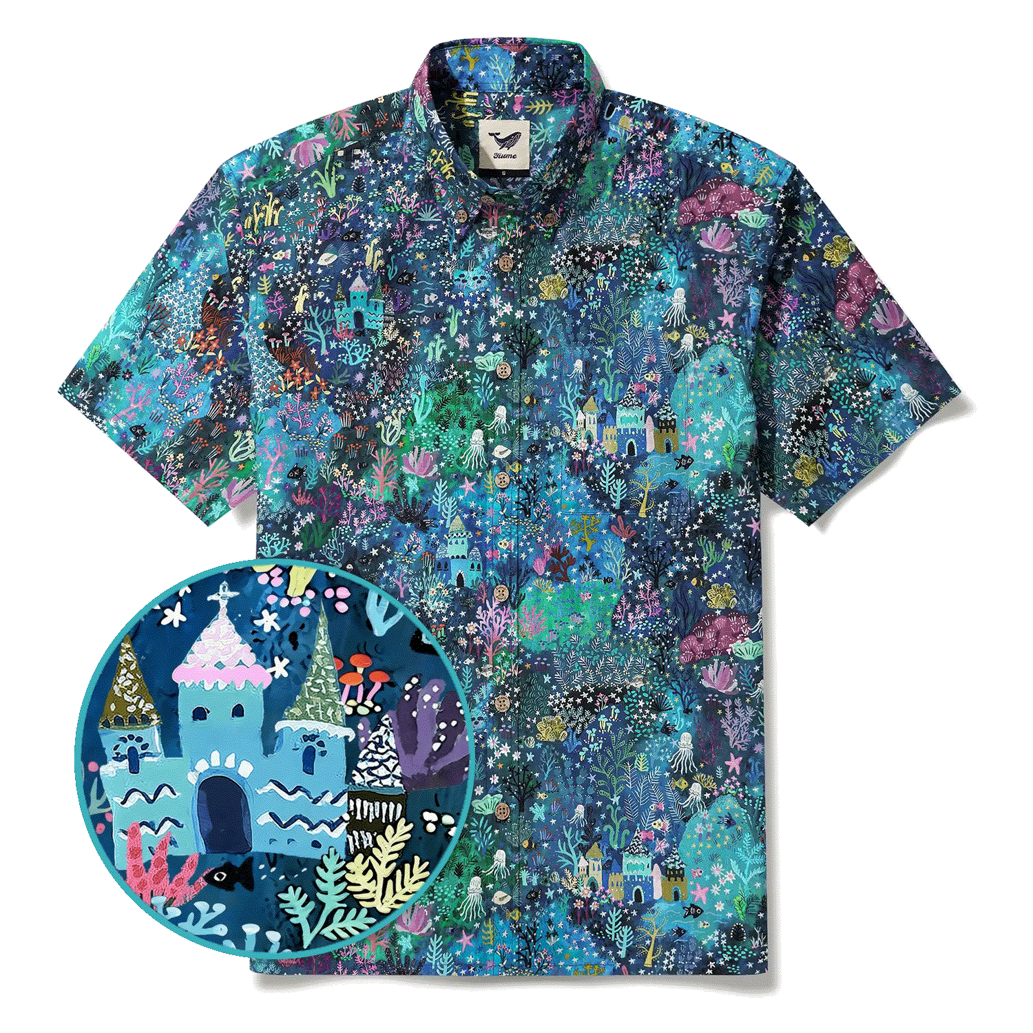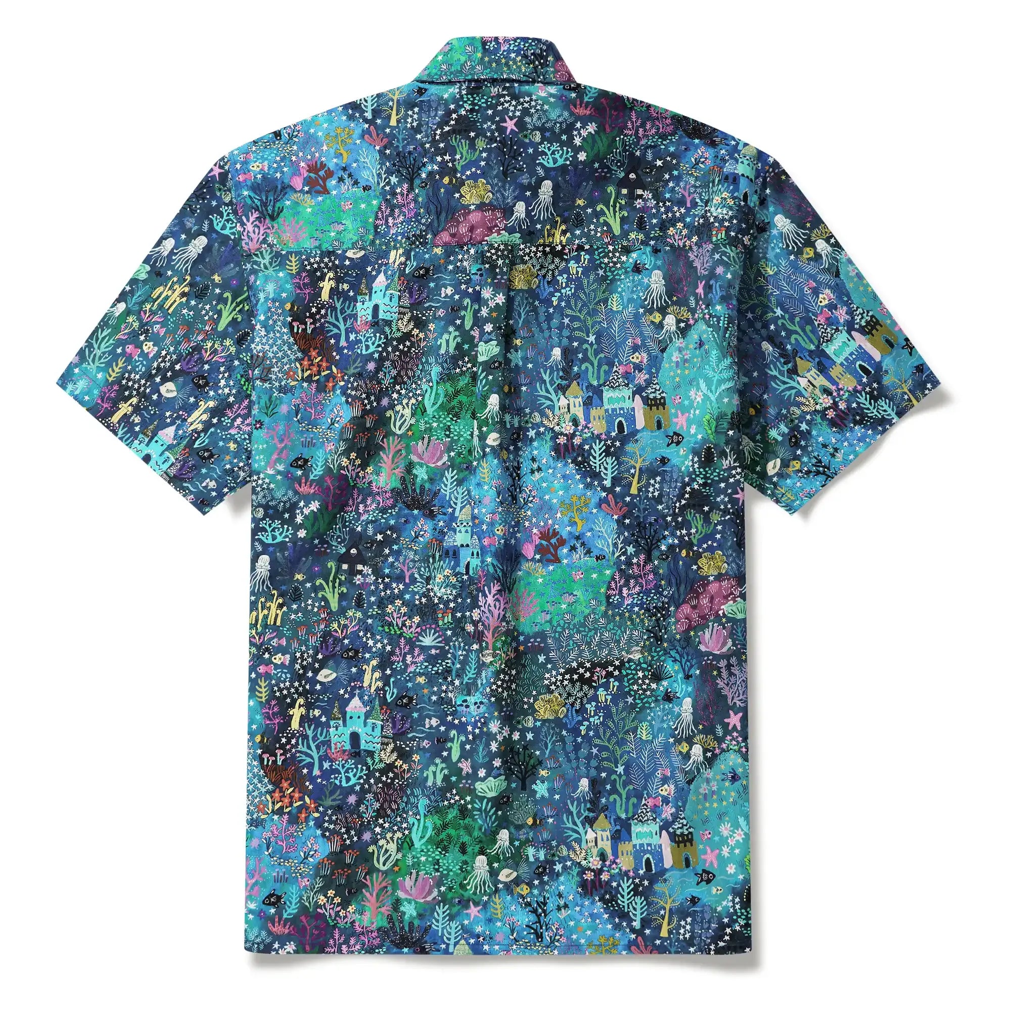 Men's Hawaiian Shirt Short Sleeve Button-down 100% Cotton Blue Aloha Enchanted Underwater World