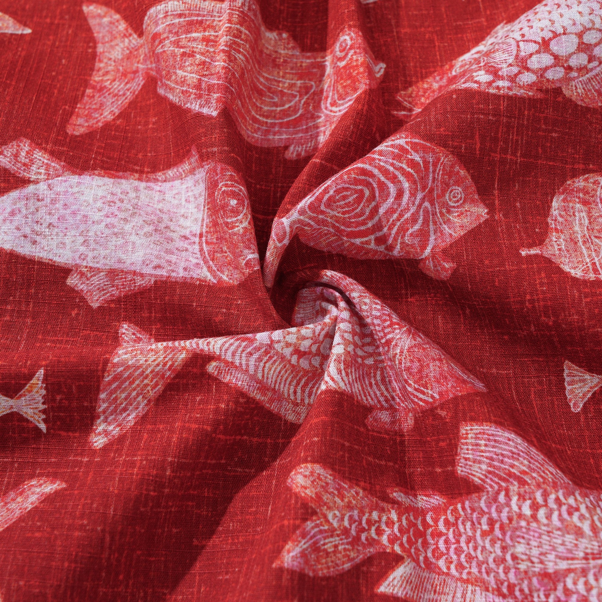 Men's Red Fish Hawaiian Shirt 100% Cotton Button-down Short Sleeve Aloha Shirt For Gift