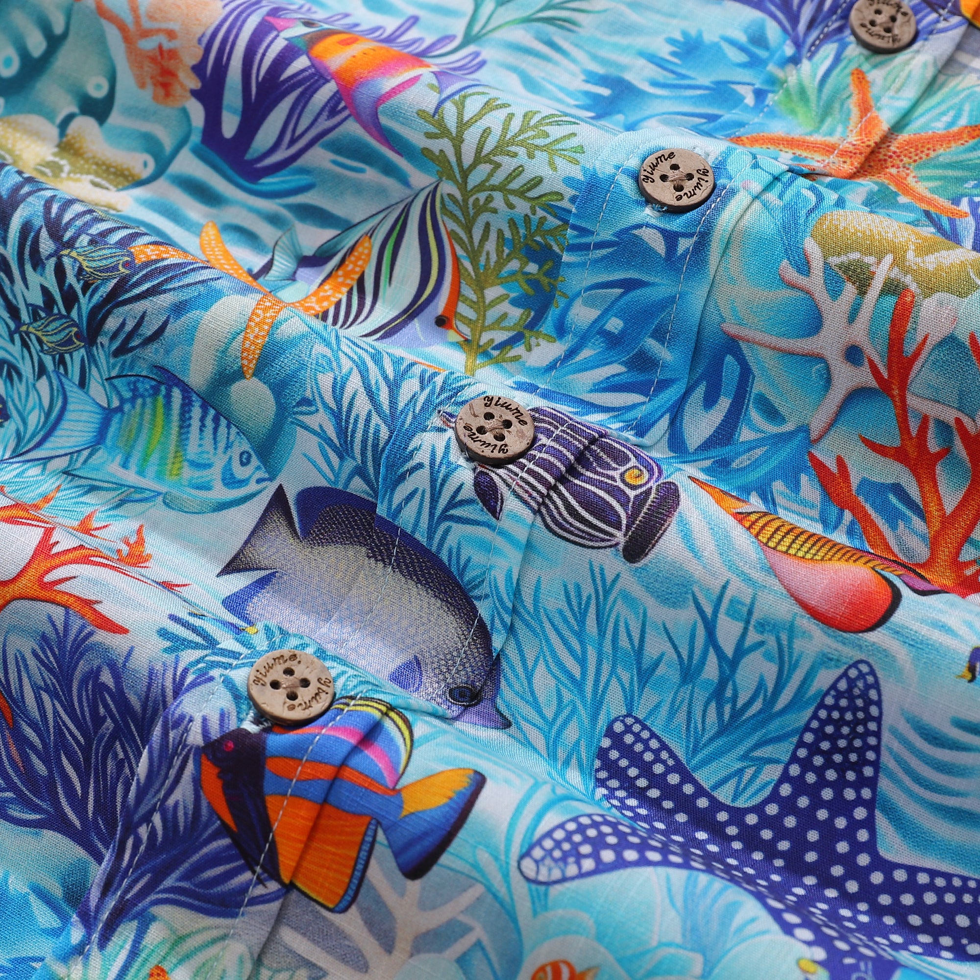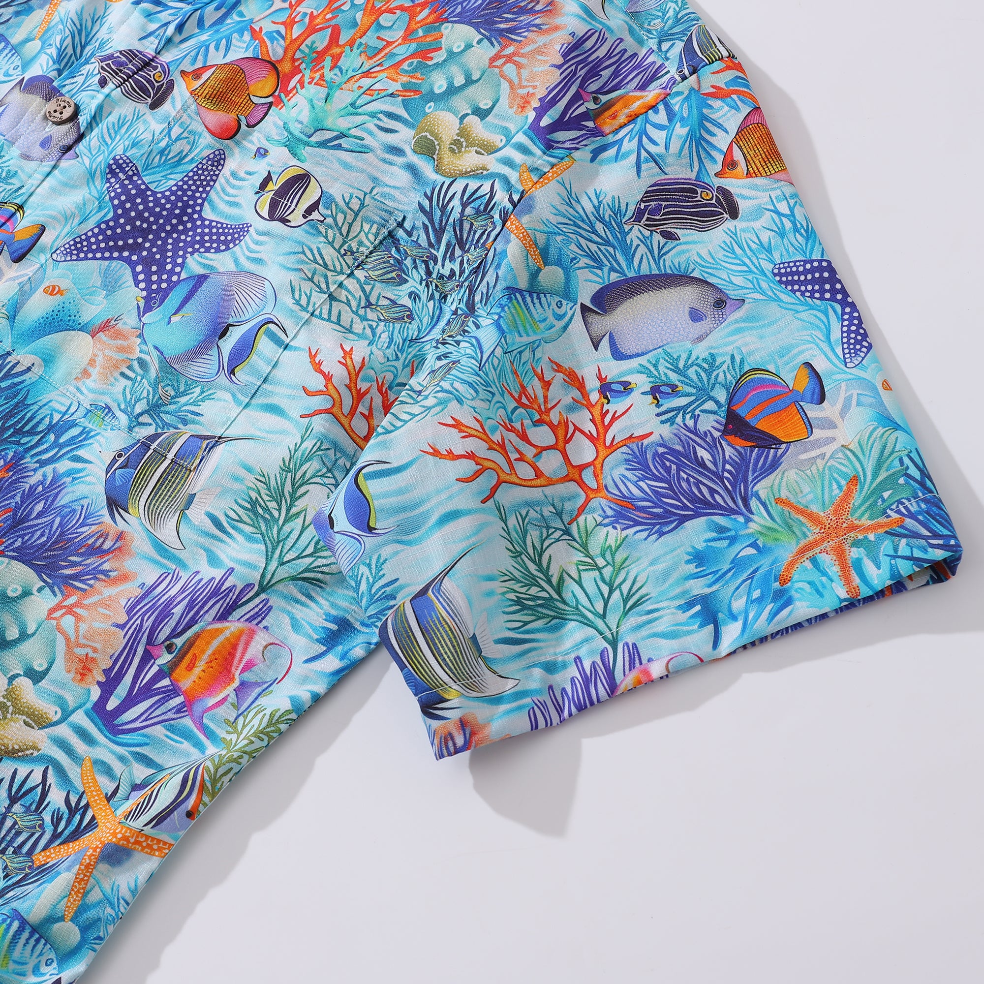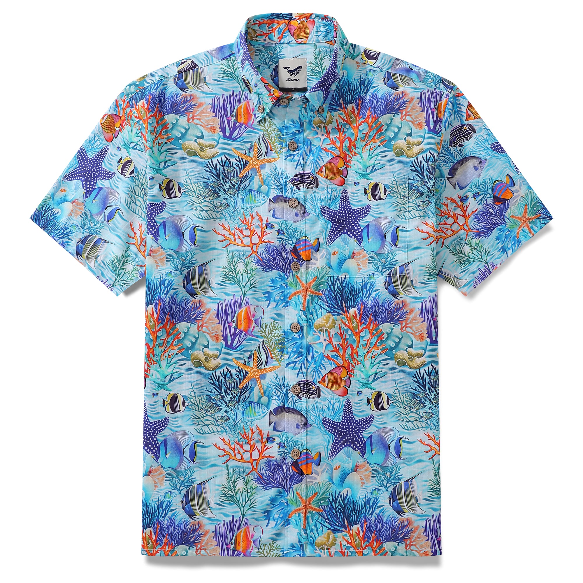 Hawaiian Shirt For Men Underwater Wonderland Button-down Shirt Short Sleeve 100% Cotton Shirt