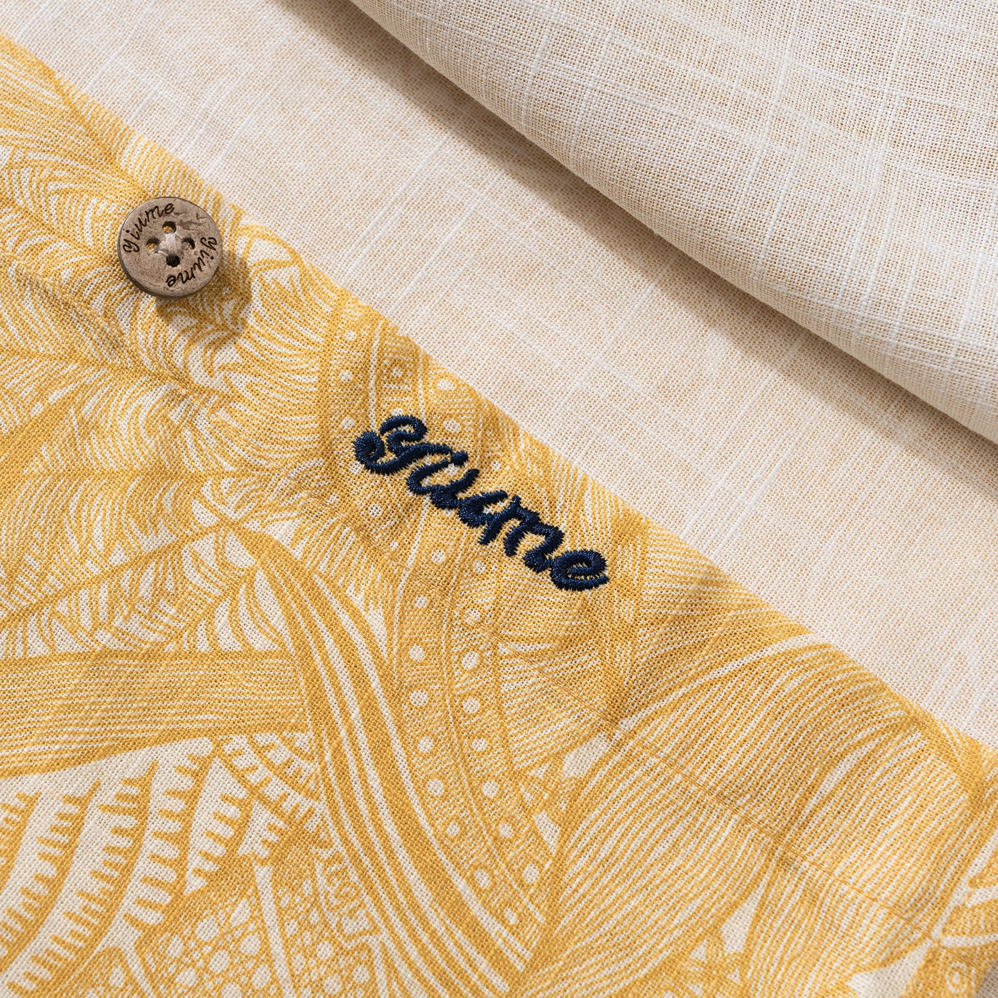 Tropical Golden Feather Dream 100% Cotton Men's Long Sleeve Button-down Shirt Aloha Hawaiian