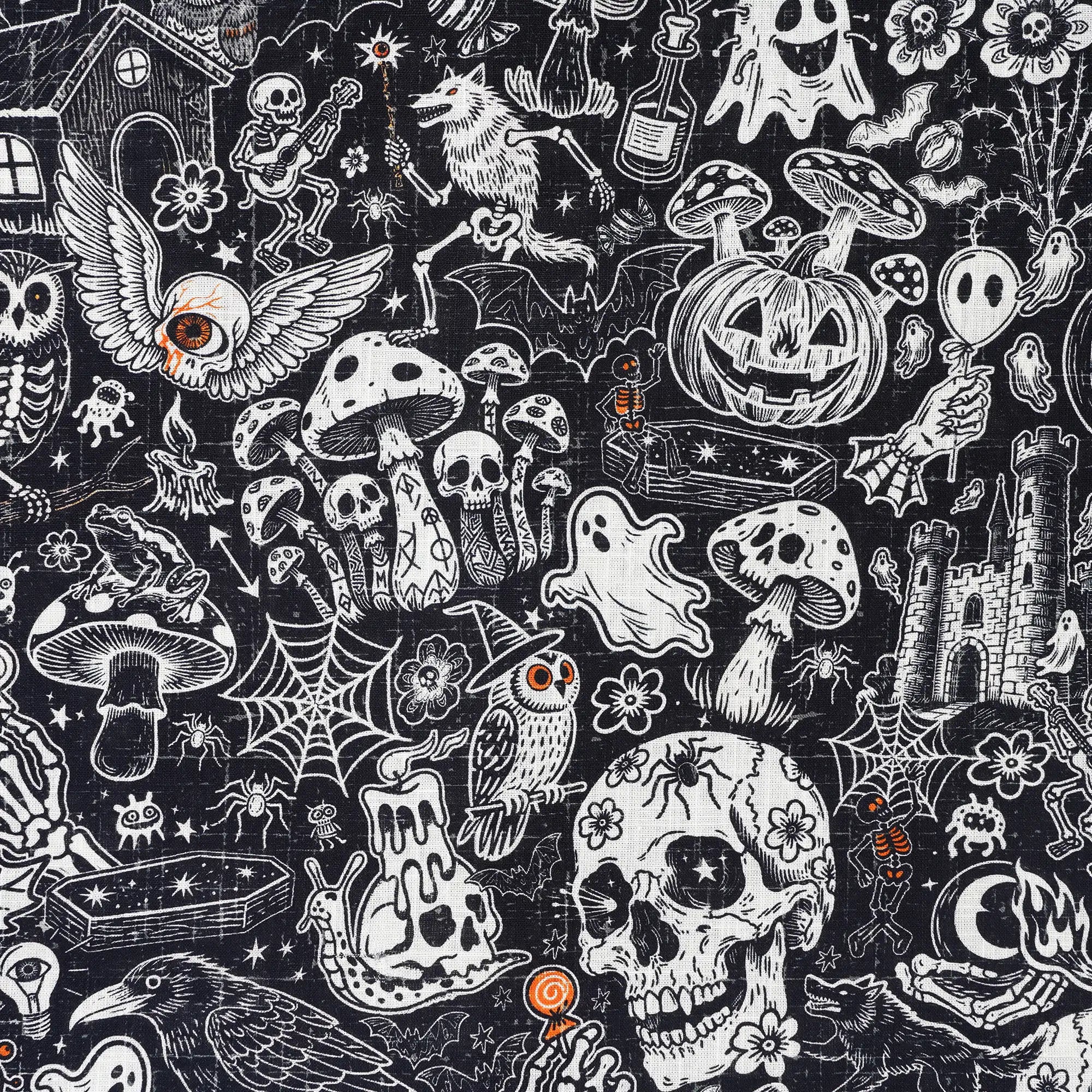 Celebrate Halloween with our "Everyday Festive Invitation" shirt! Skeletons play guitars, ghosts play hide-and-seek, pumpkins, crows, and spider webs come together for a lively party. Playful details like scattered candy in Halloween orange add a touch of whimsy. Embrace the holiday spirit in a retro style without the fright. This shirt is a subtle nod to Halloween fun, offering sophistication and surprises. Feel relaxed and festive anytime!