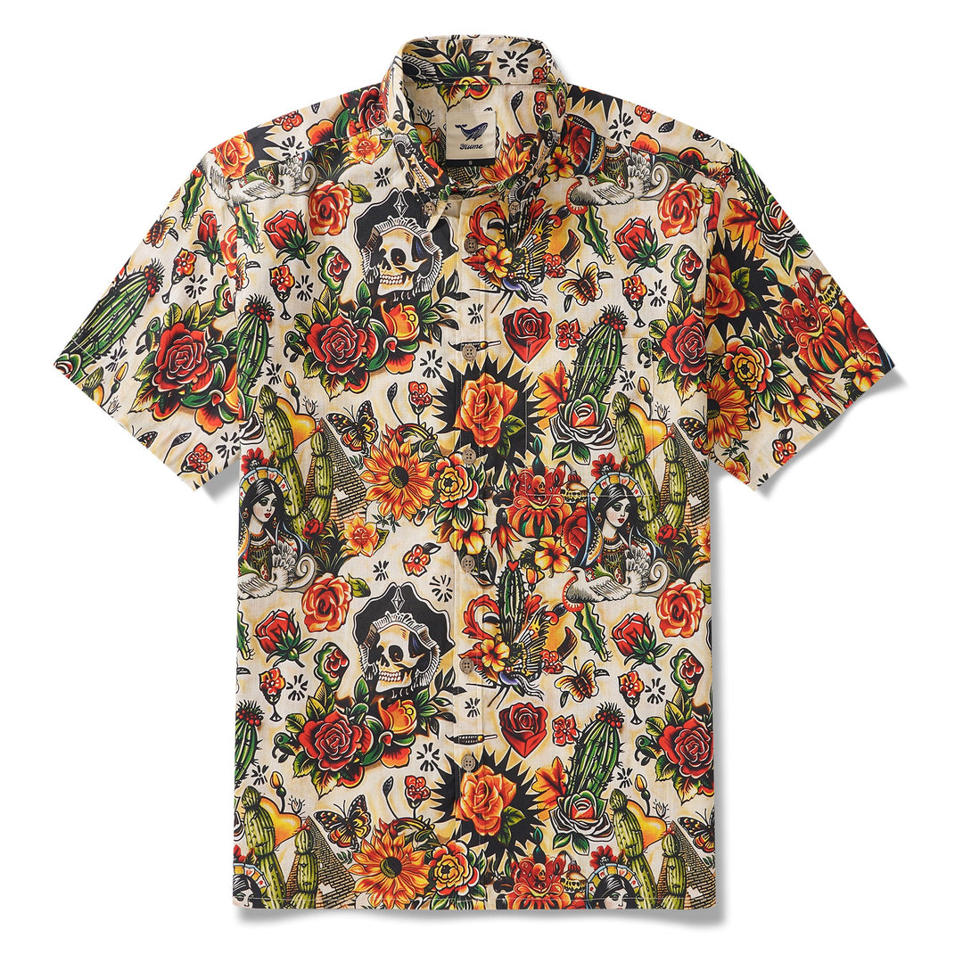 Virgin Mary Hawaiian Shirt For Men Tiki Shirt Short Sleeve Button-down 100% Cotton Desert Skull Shirt