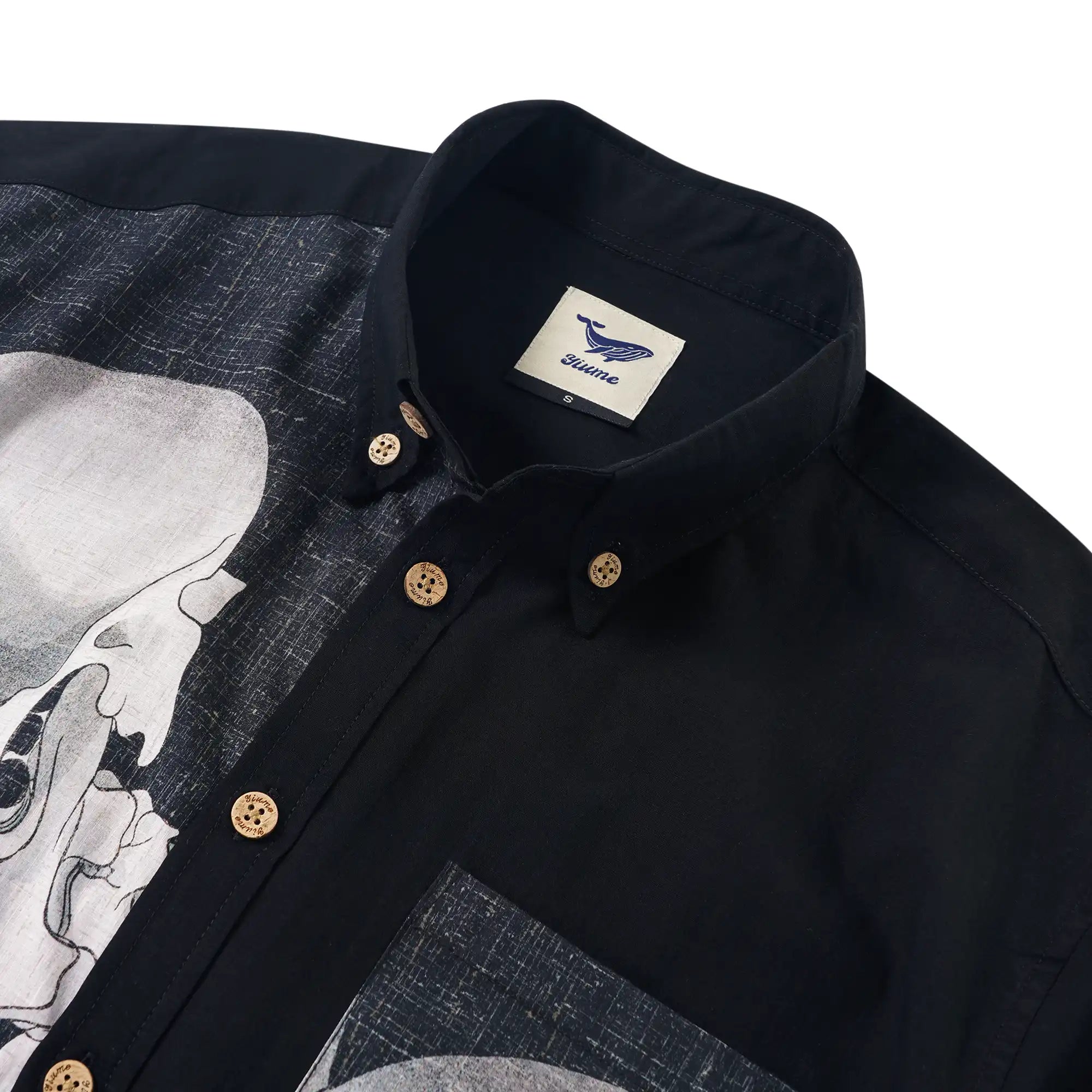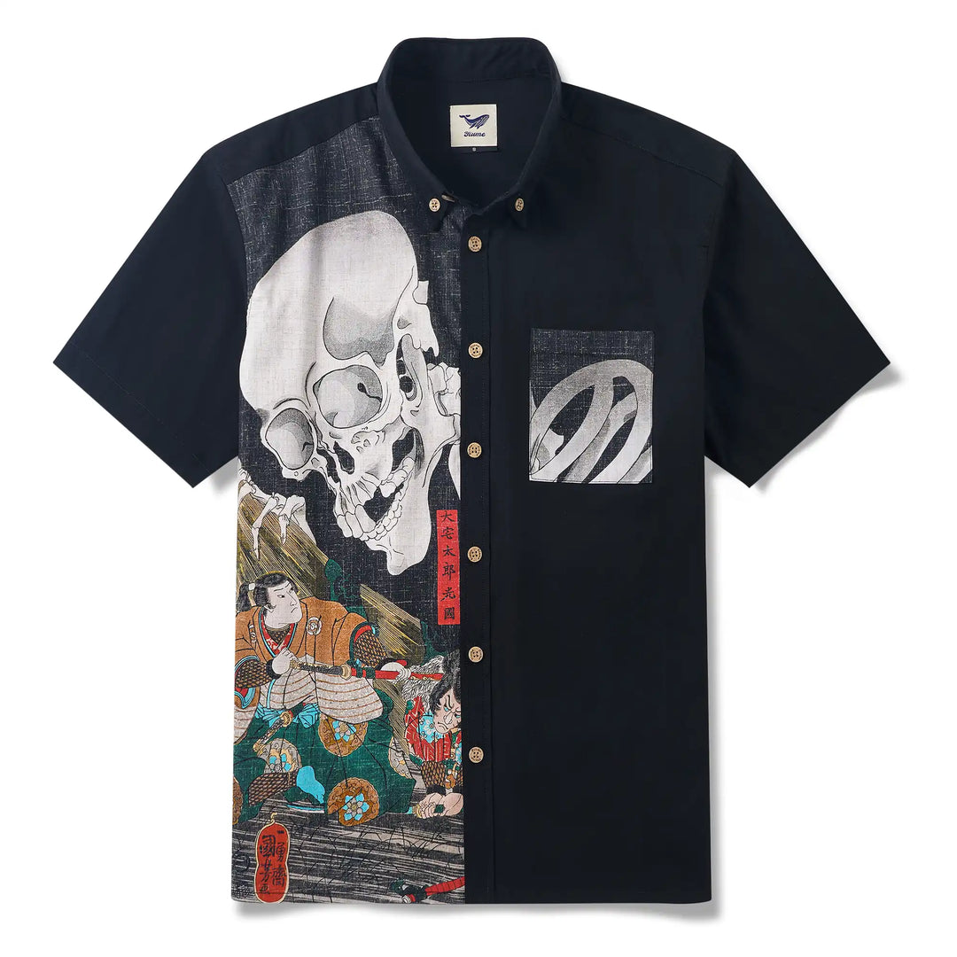 Men's Hawaiian Shirt Short Sleeve Button-down 100% Cotton Black Aloha Glowing Challenge Of The Skull Ghost
