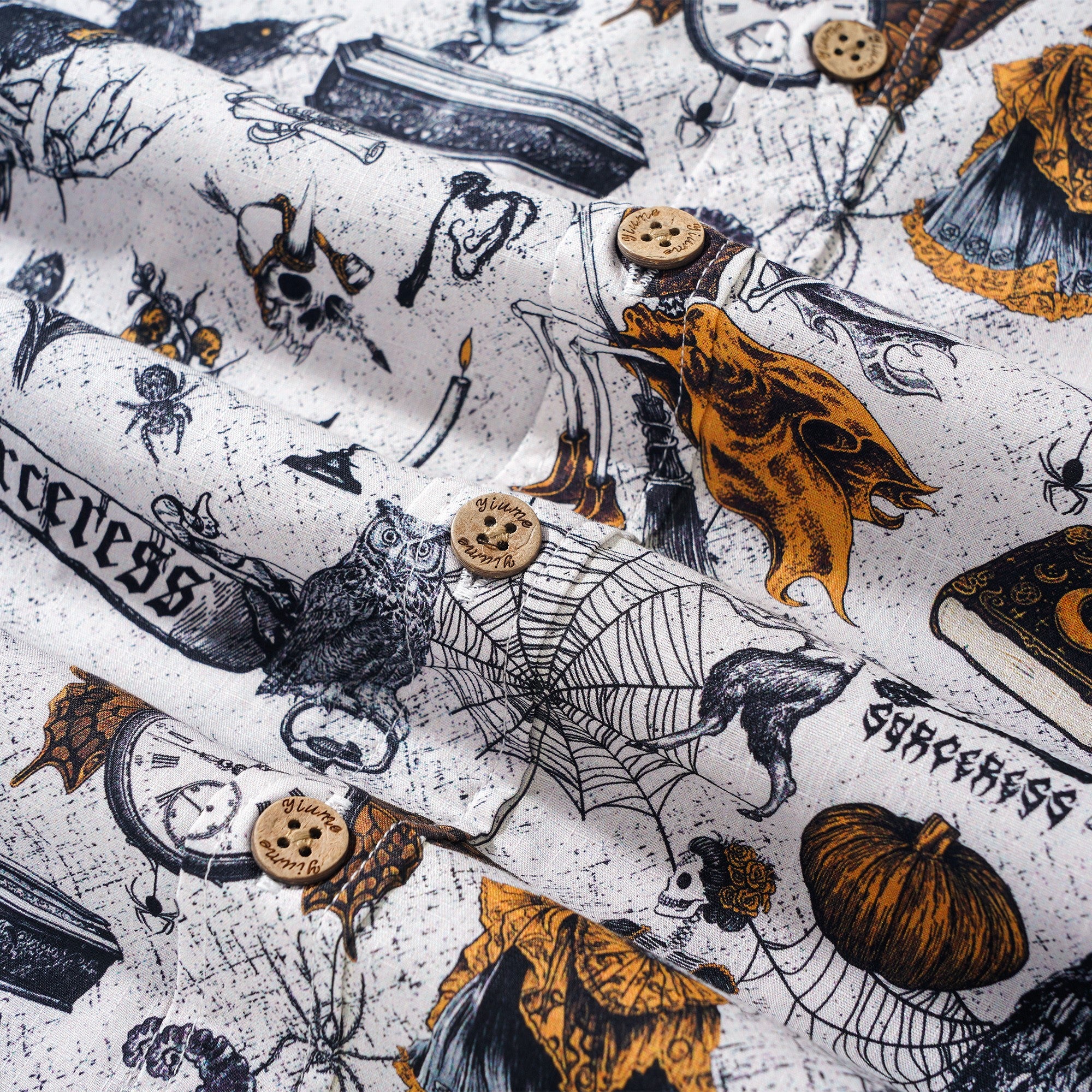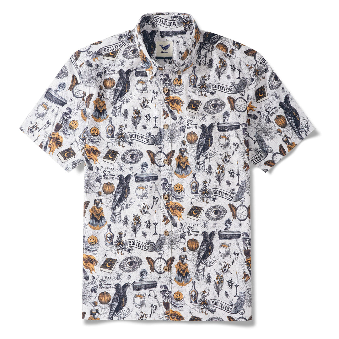 Men's Hawaiian Shirt Short Sleeve Button-down 100% Cotton White Aloha Black Magic