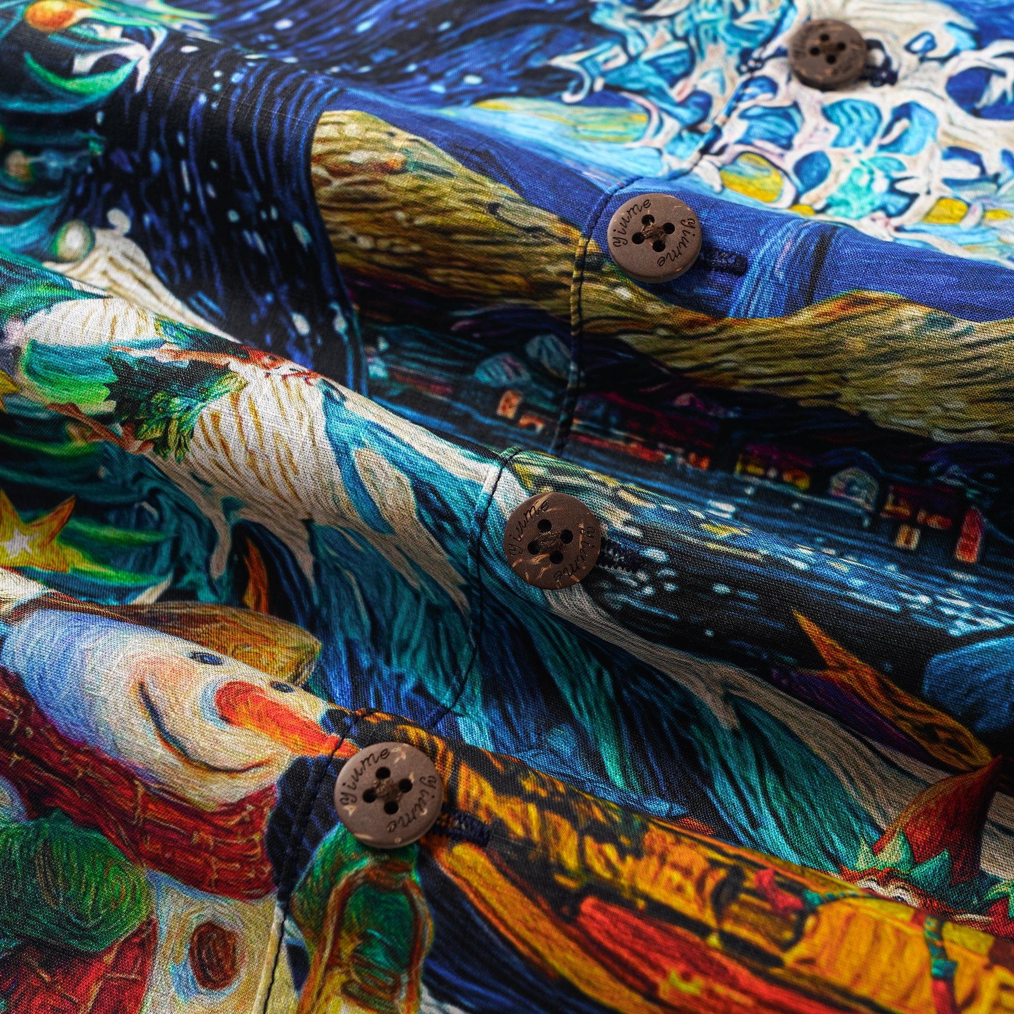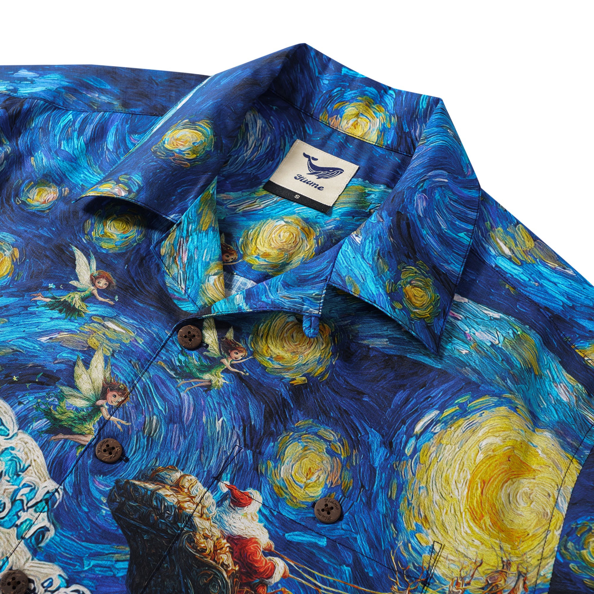 Men's Christmas Hawaiian Shirt Van Gogh Art Shirt Camp Collar 100% Cotton Blue Starry Christmas Magic With Van Gogh