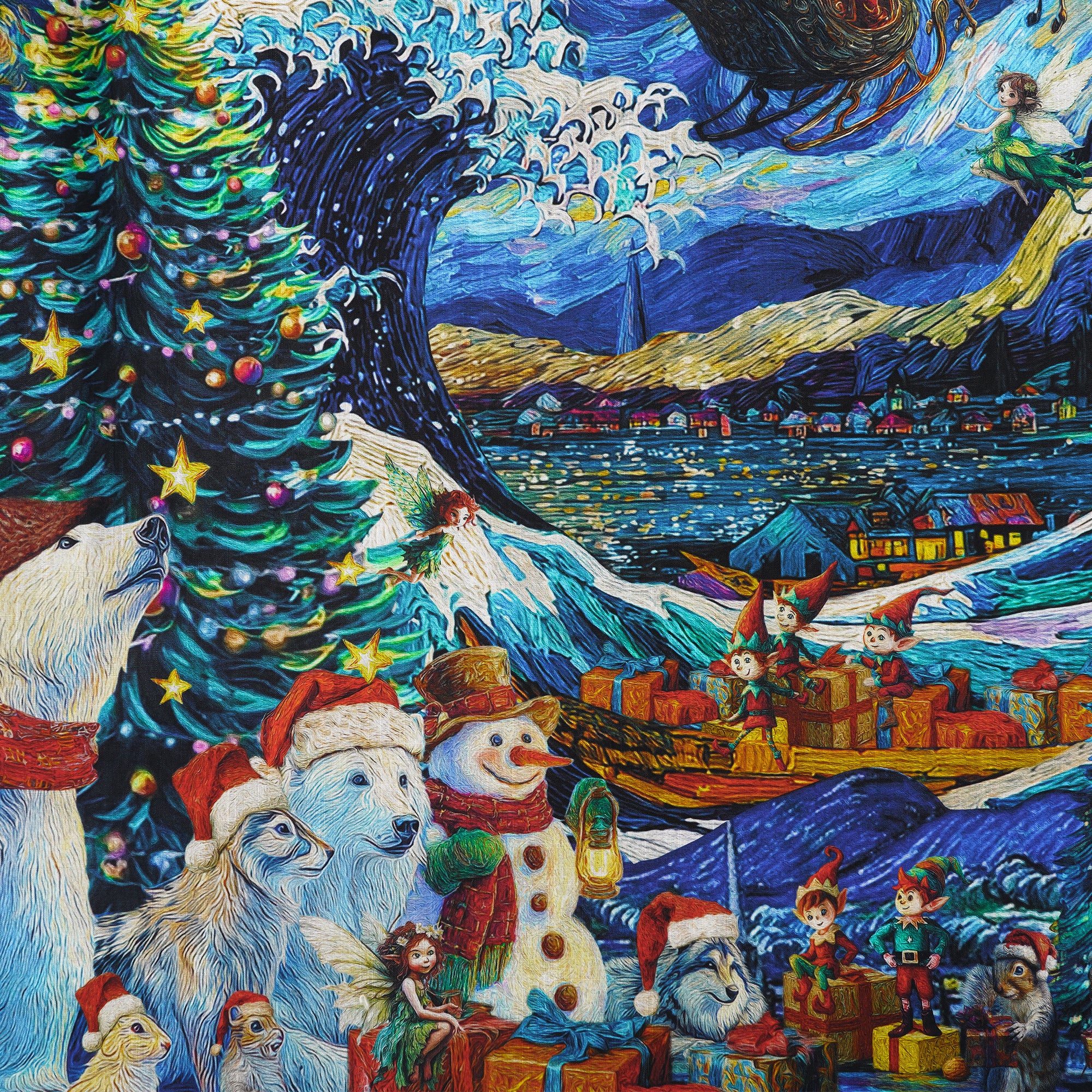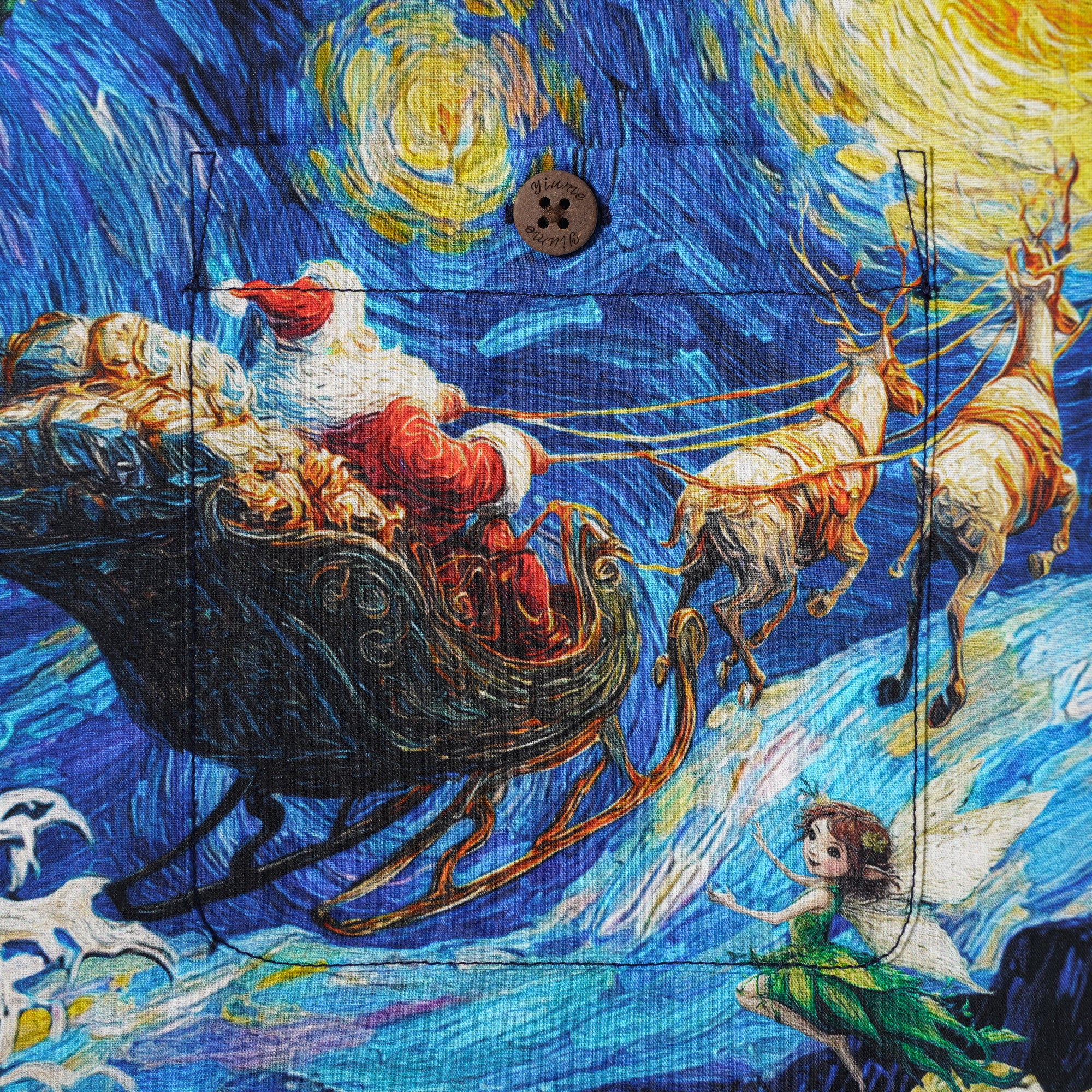 Celebrate Christmas with Van Gogh's art on this Hawaiian shirt. Experience Santa flying his sleigh, elves playing by Christmas trees, and polar bears cuddling amid gifts. Let art and holiday cheer collide as fairies dance in the sky. A fusion of art history and festive joy, this shirt blends Van Gogh-inspired charm for a delightful Christmas vibe.