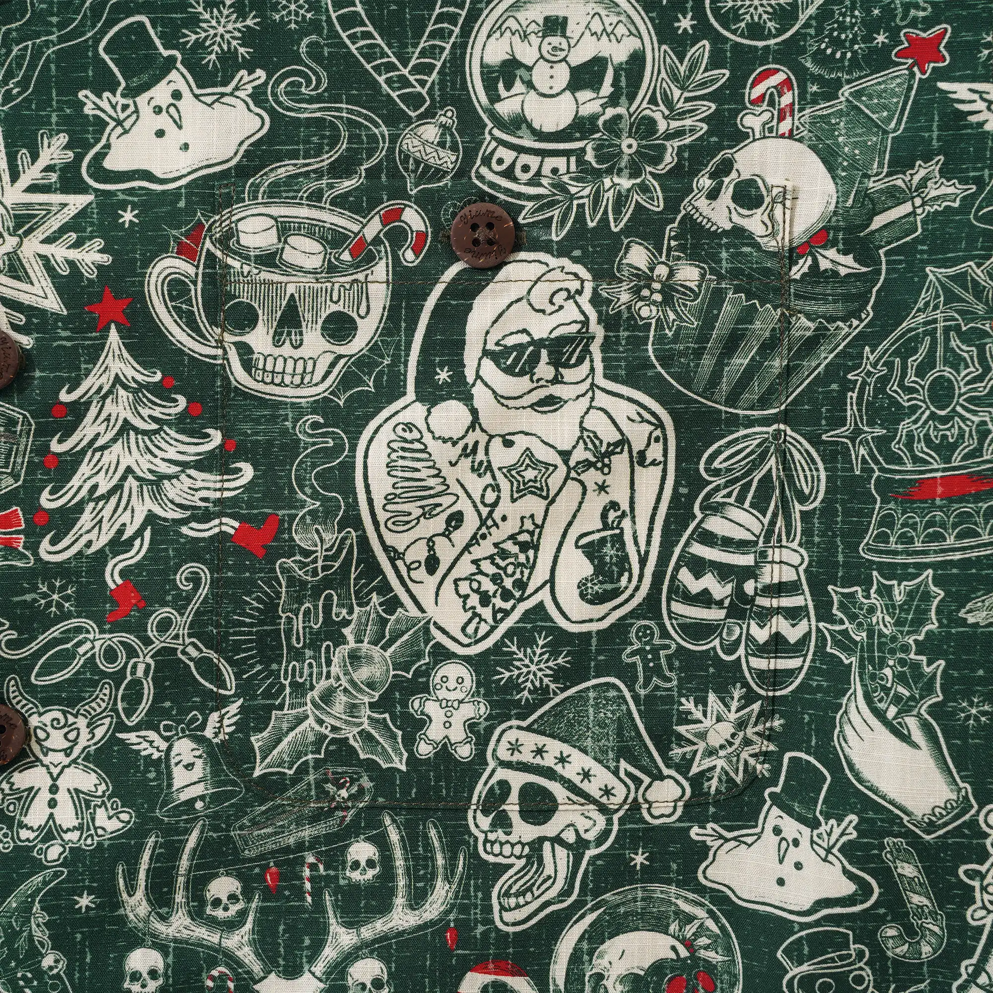 Get rid of the clichés of Christmas, with a green base and red accents, mixing skull Santa, dark snowflakes, and traditional elements for a gothic, humorous twist. Embrace the rebellious humor of a "dark Christmas player." This Christmas style is cool beyond measure.