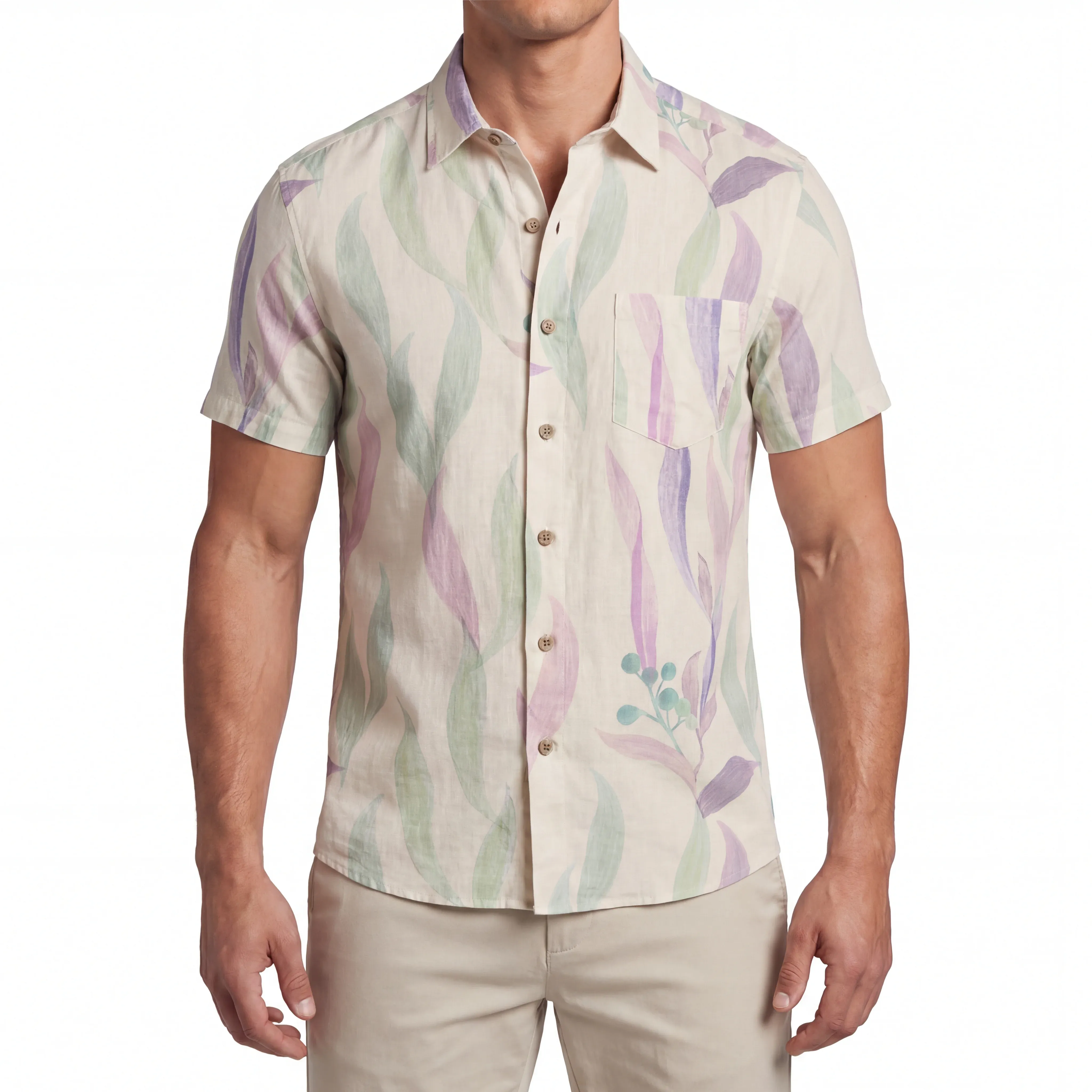 - Botton-up collar, short sleeve, buttons closure, with pocket(s)