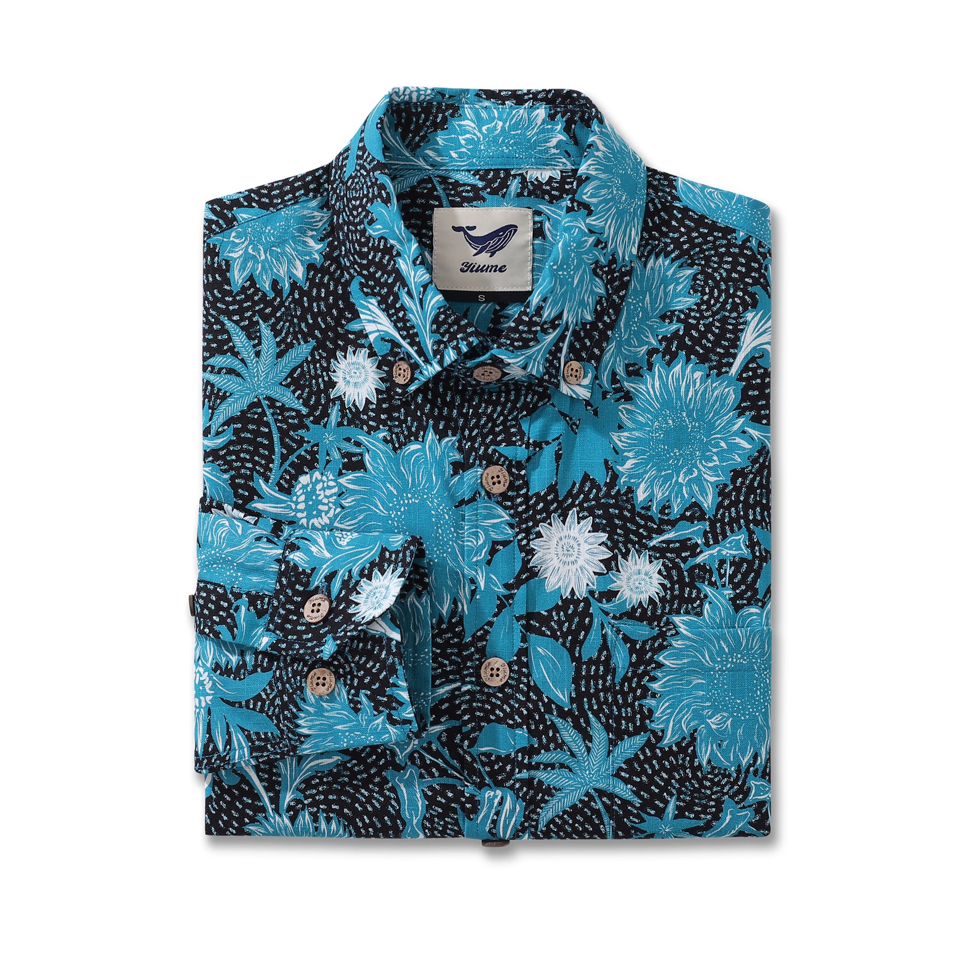 Long Sleeve Hawaiian Shirt For Men Sunflower Sea100% Cotton Button-down Aloha Shirt