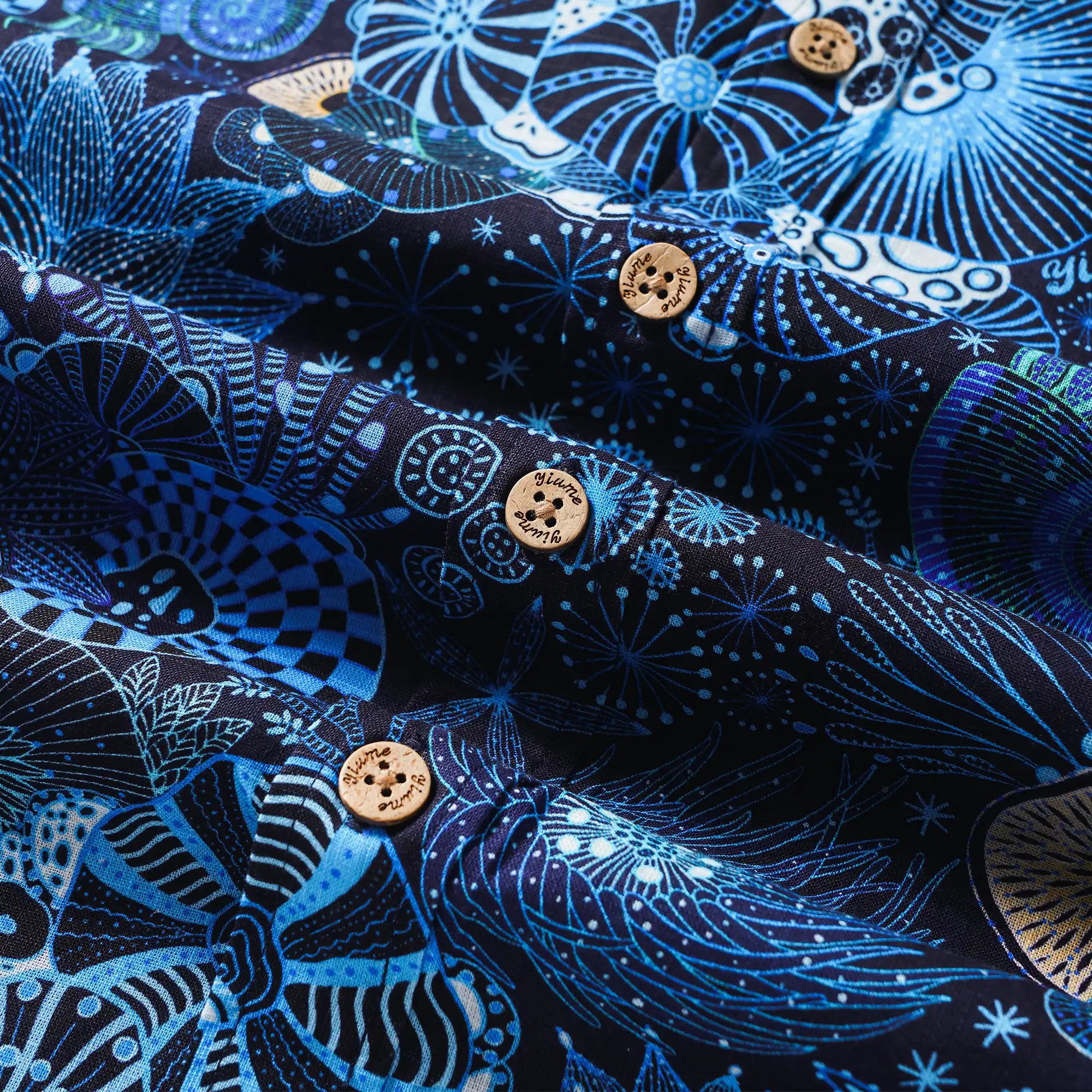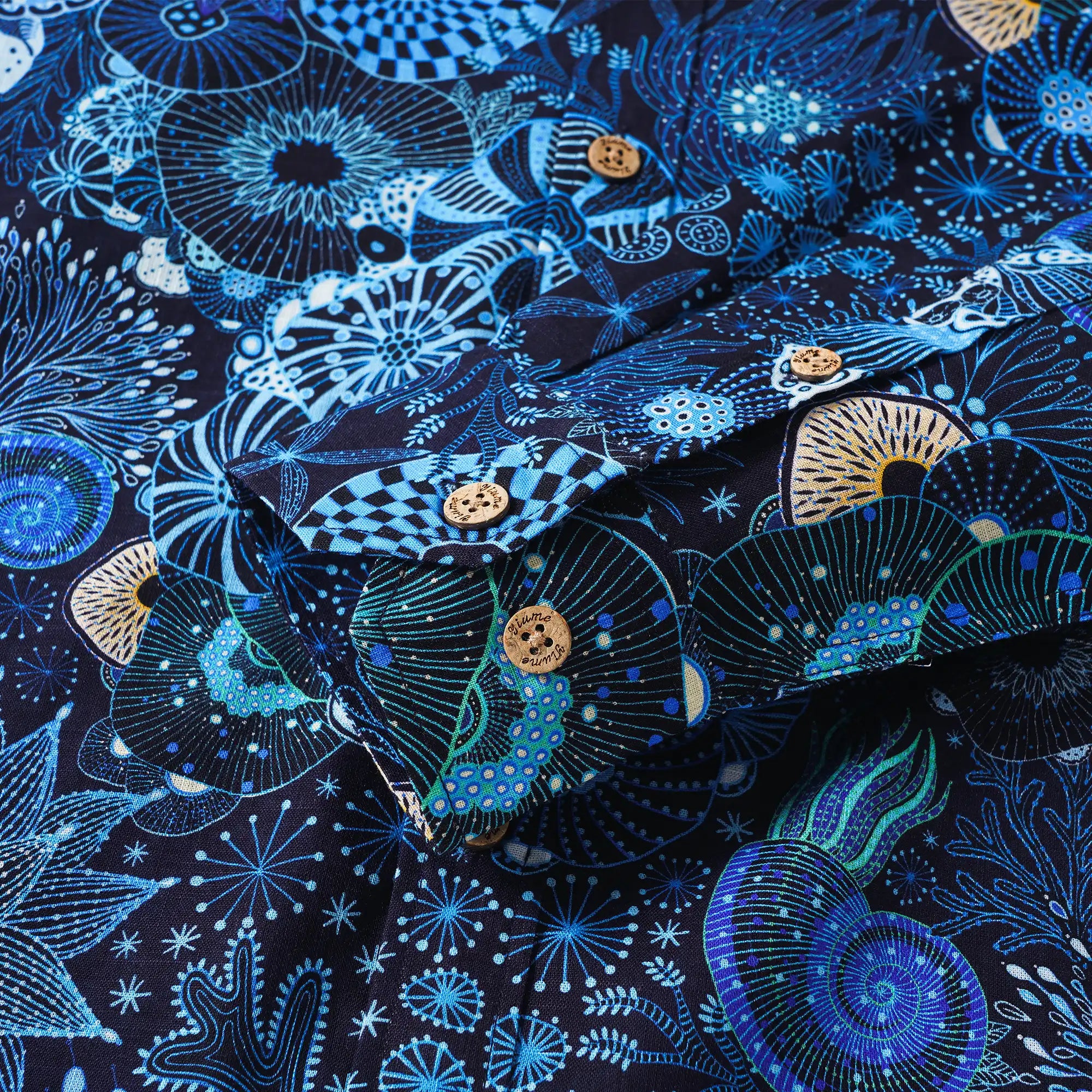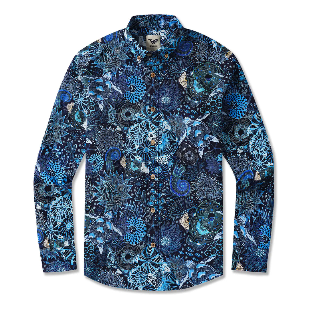 Men's Hawaiian Shirt Long Sleeve Button-down 100% Cotton Blue Aloha Reef Rules