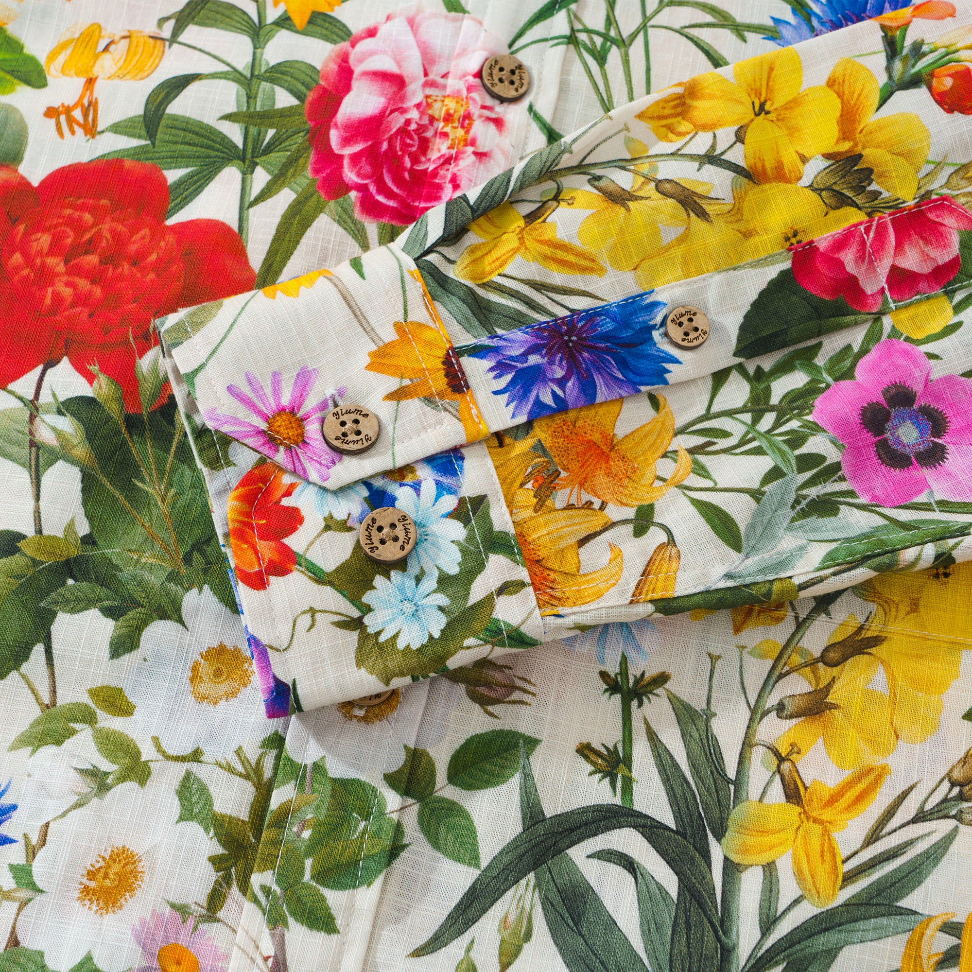 Long Sleeve Hawaiian Shirt For Men Sunlight Florals 100% Cotton Button-down Aloha Shirt