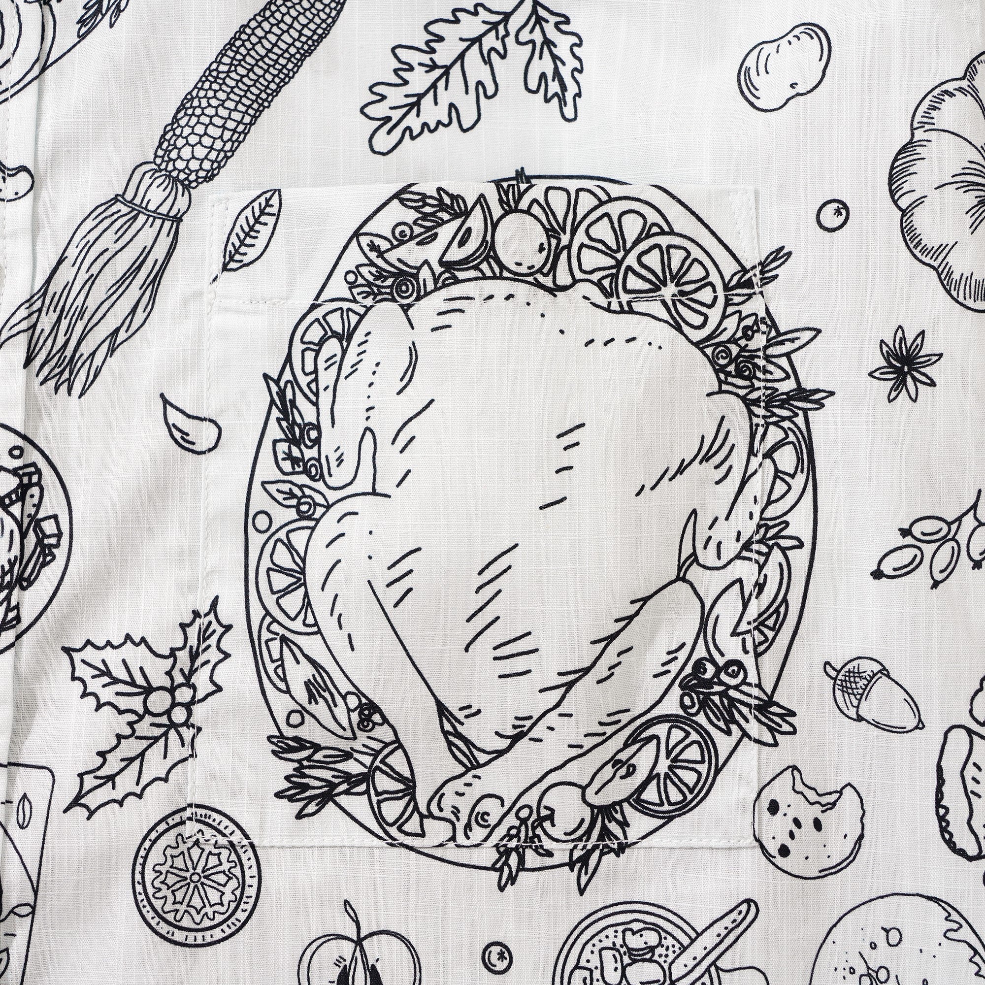 Celebrate Thanksgiving with a touch of Hawaiian artistry. Embrace the cozy chaos of a family feast - the succulent turkey, golden corn, buttery croissant, and plump apples. Let the warmth of imperfectly perfect moments linger with our art-inspired shirt. It's not just a meal; it's a heartwarming sketch of cherished memories.