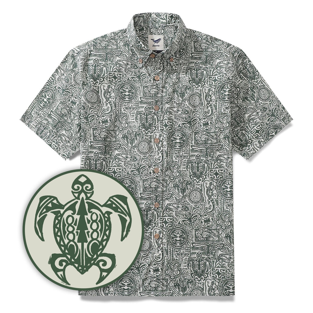 Tiki Shirt Men's Vintage Hawaiian Shirt Cotton Button-down Short Sleeve Aloha Shirt Guardian Totem