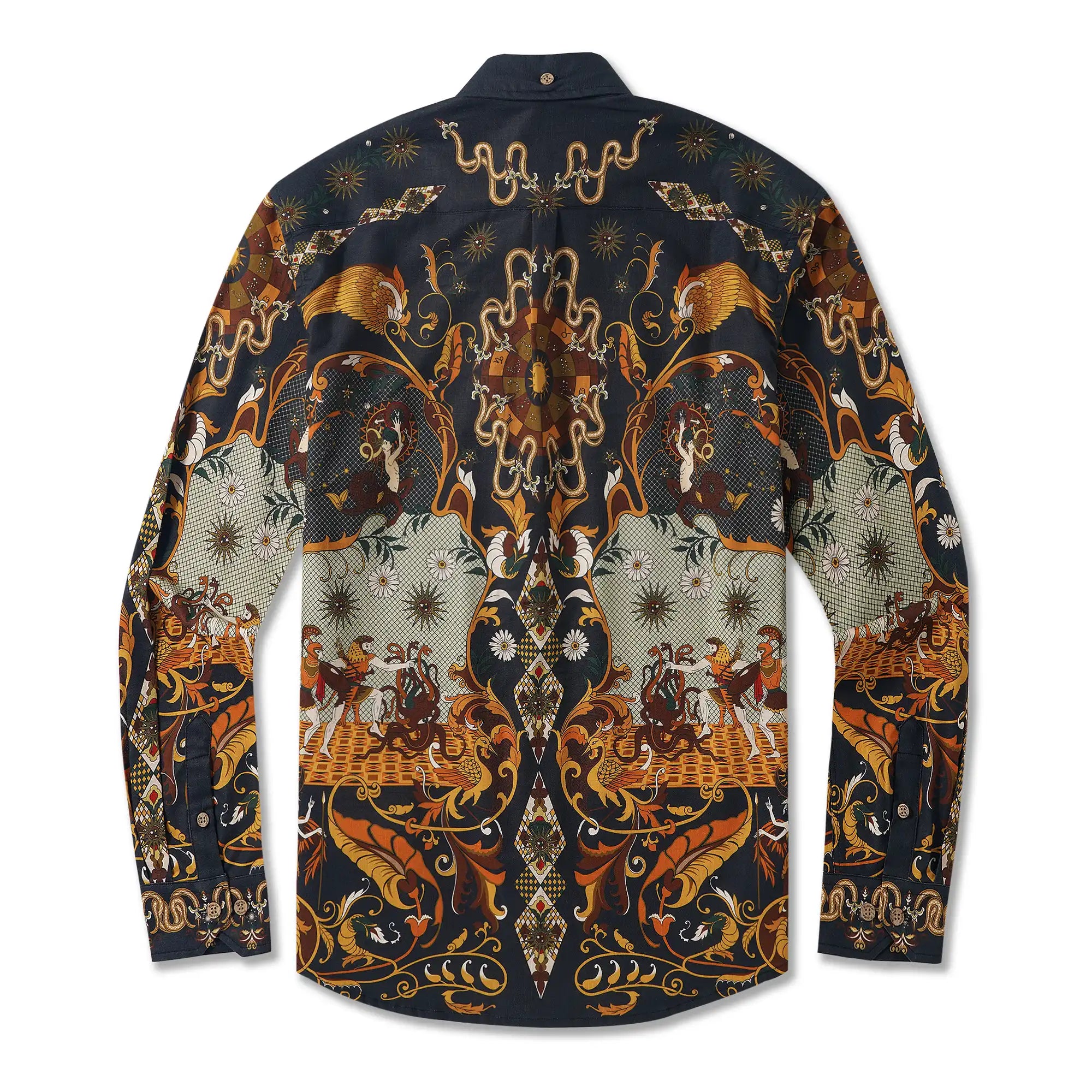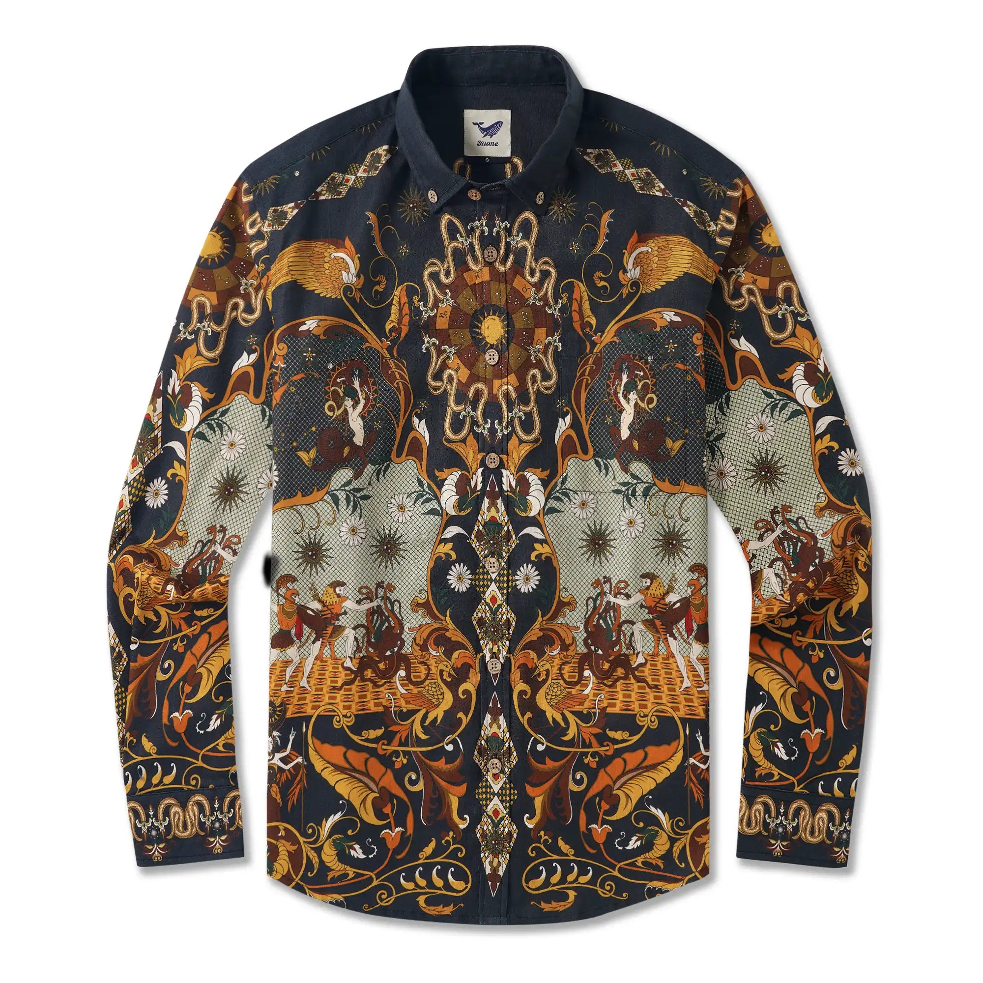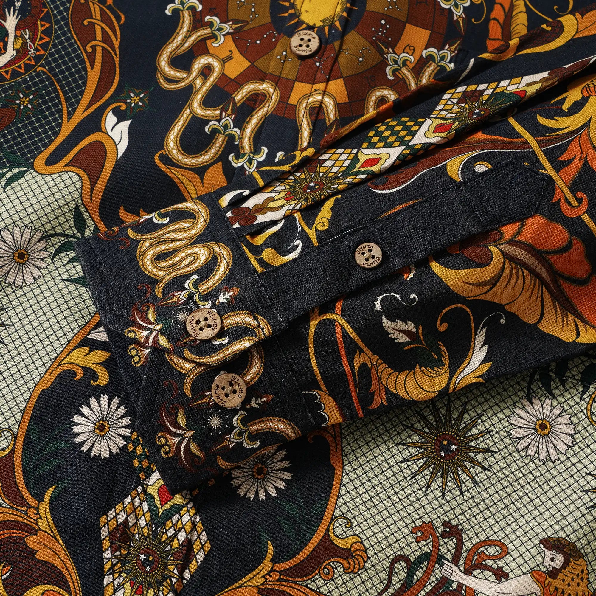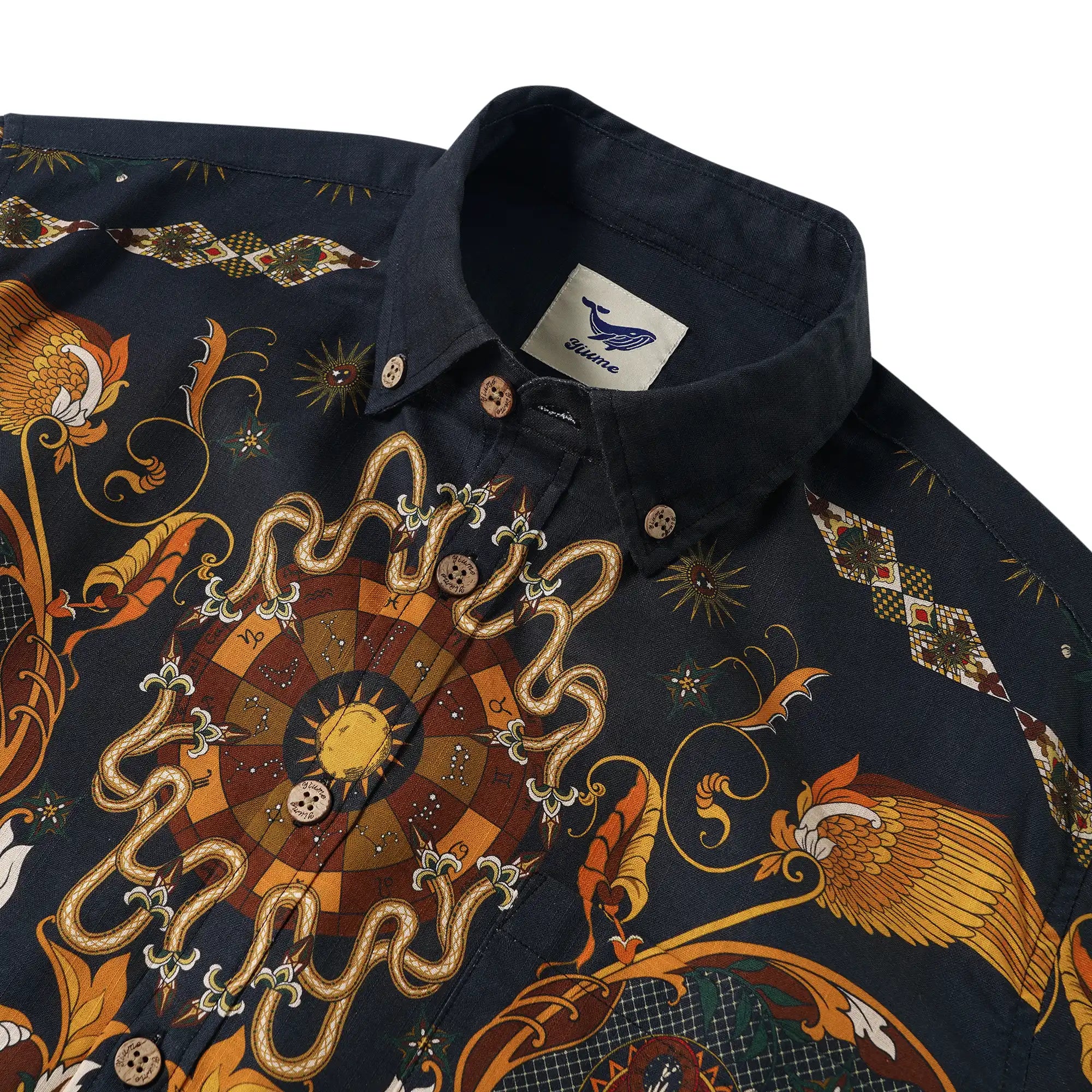 Men's Hawaiian Shirt Long Sleeve Button-down 100% Cotton Yellow Aloha Mythical Legends