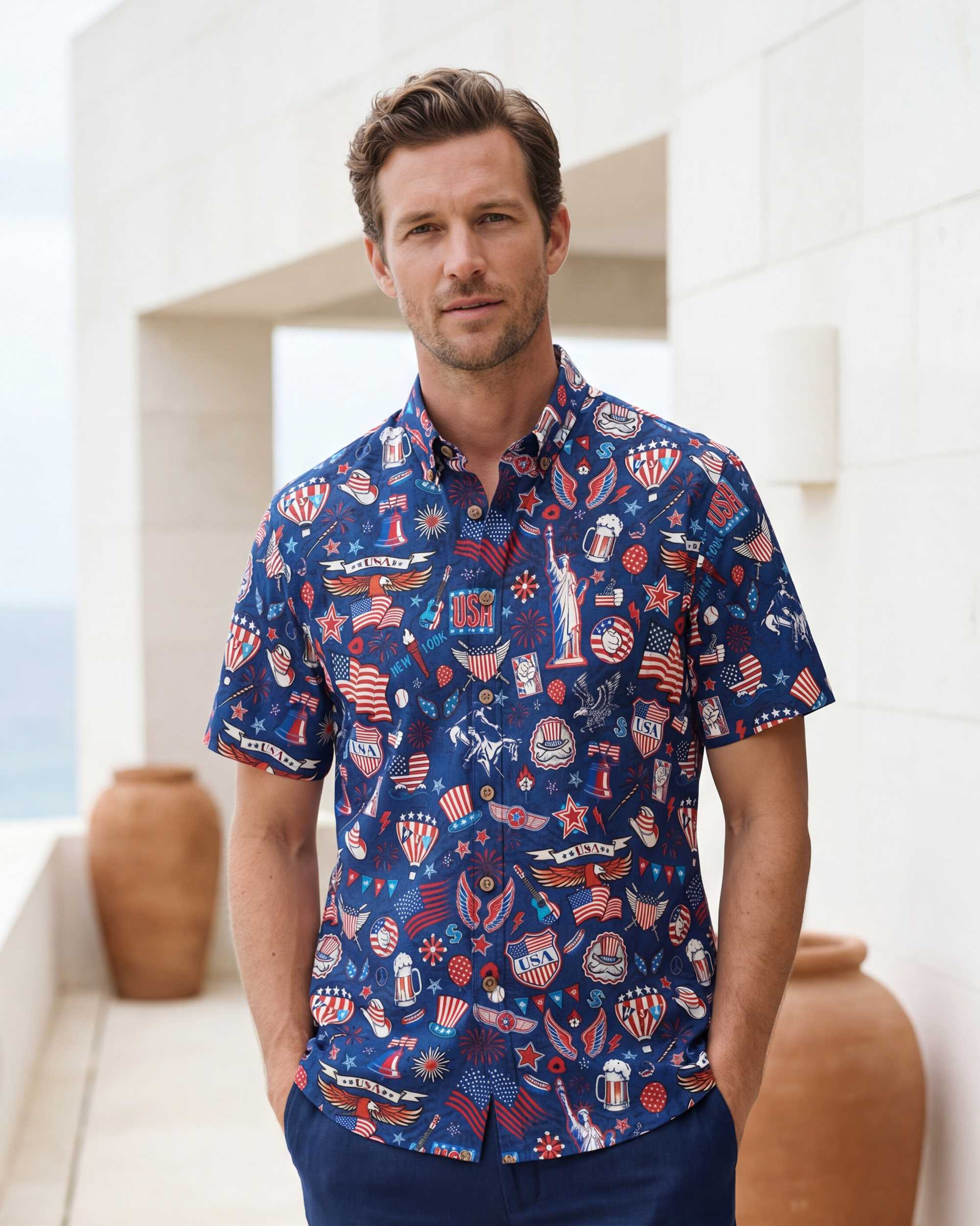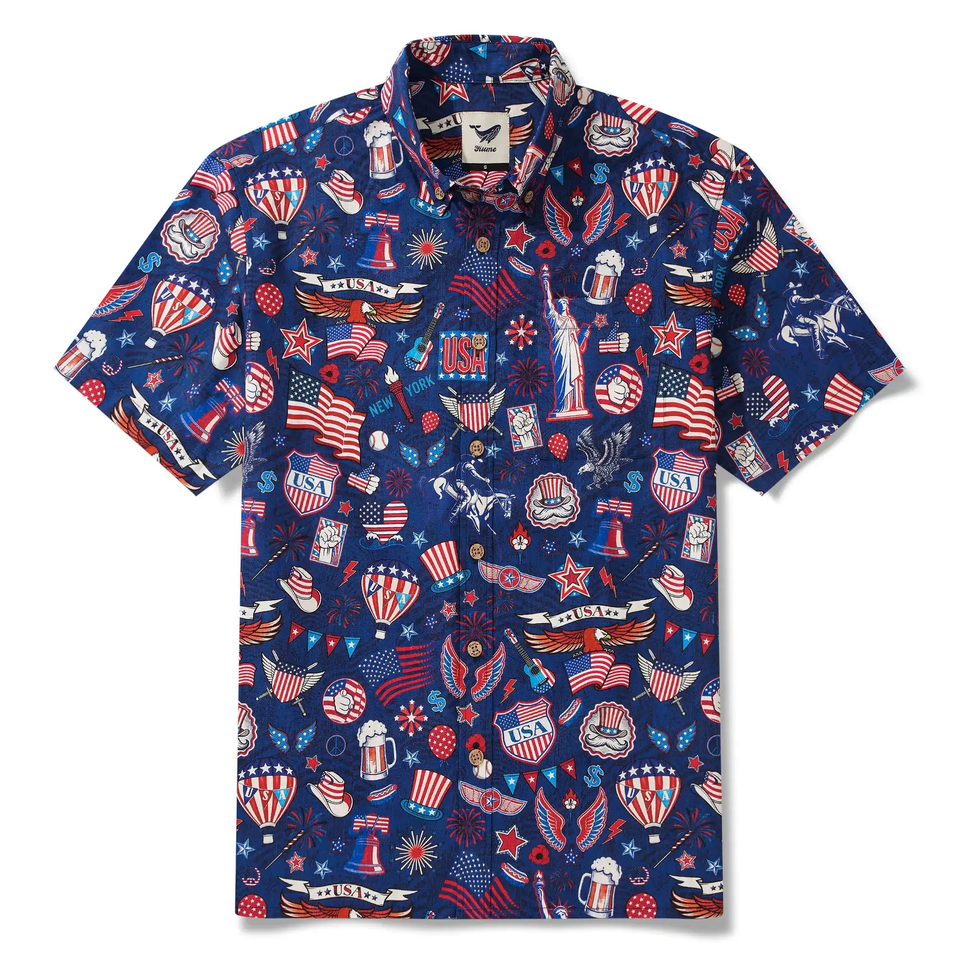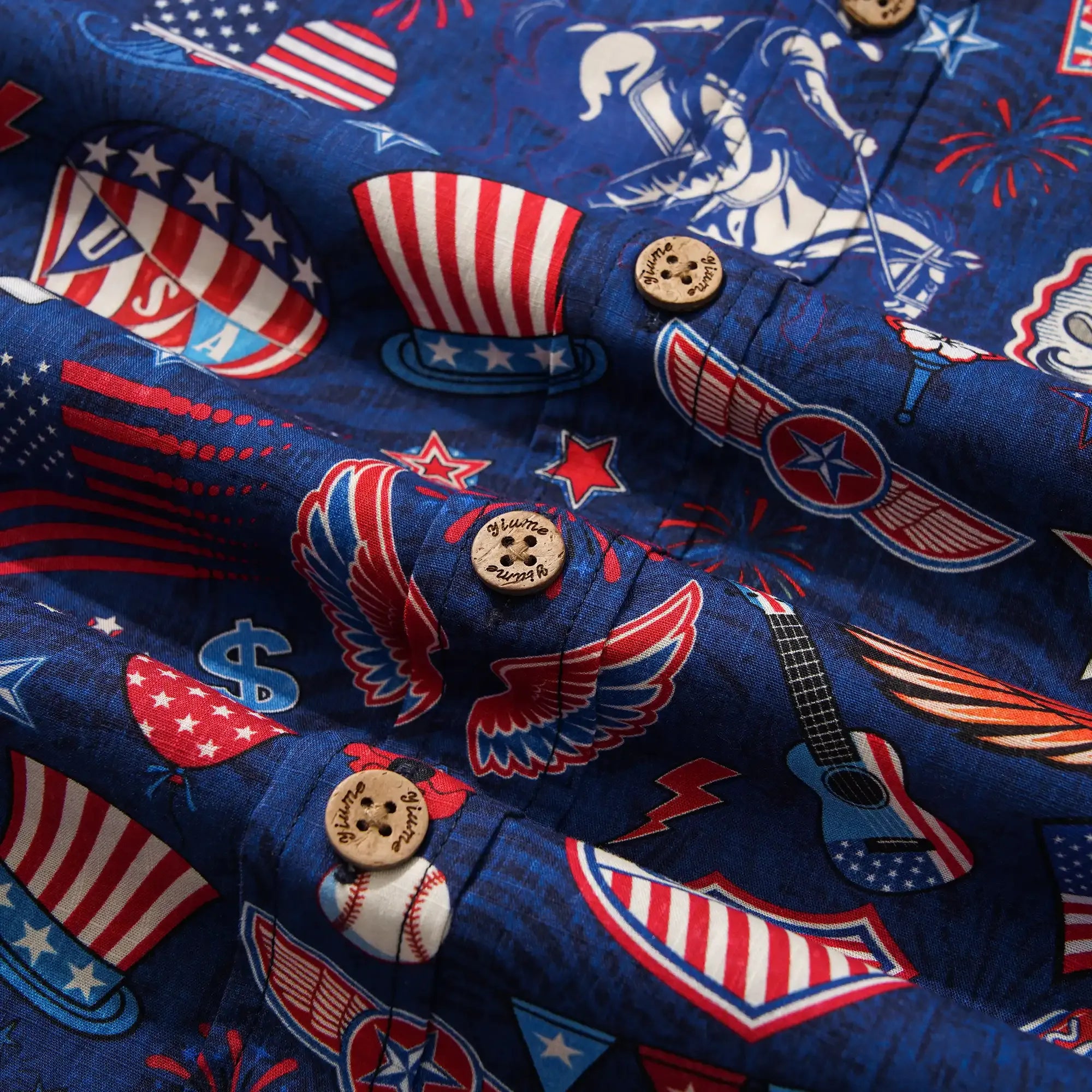 Men's Hawaiian Shirt Short Sleeve Button-down 100% Cotton Blue Aloha Liberty’s Patriot Canvas