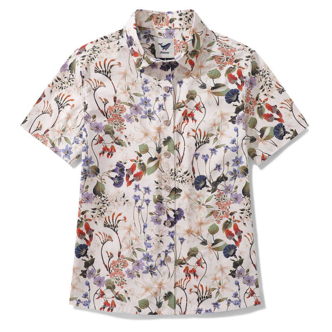 Women's Hawaiian Shirt Wildflowers By Eloise Cotton Button-up Short Sleeve Australian Wildflower By Eloise
