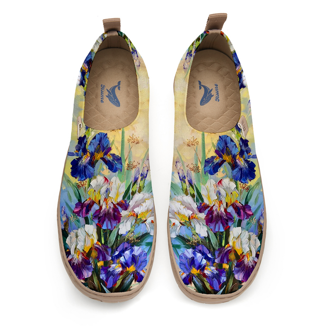 Yiume Women's Art Slip-On Shoes Comfortable Breathable Knit Casual Footwear,Iris Oil Painting Purple Purple Iris Shoes