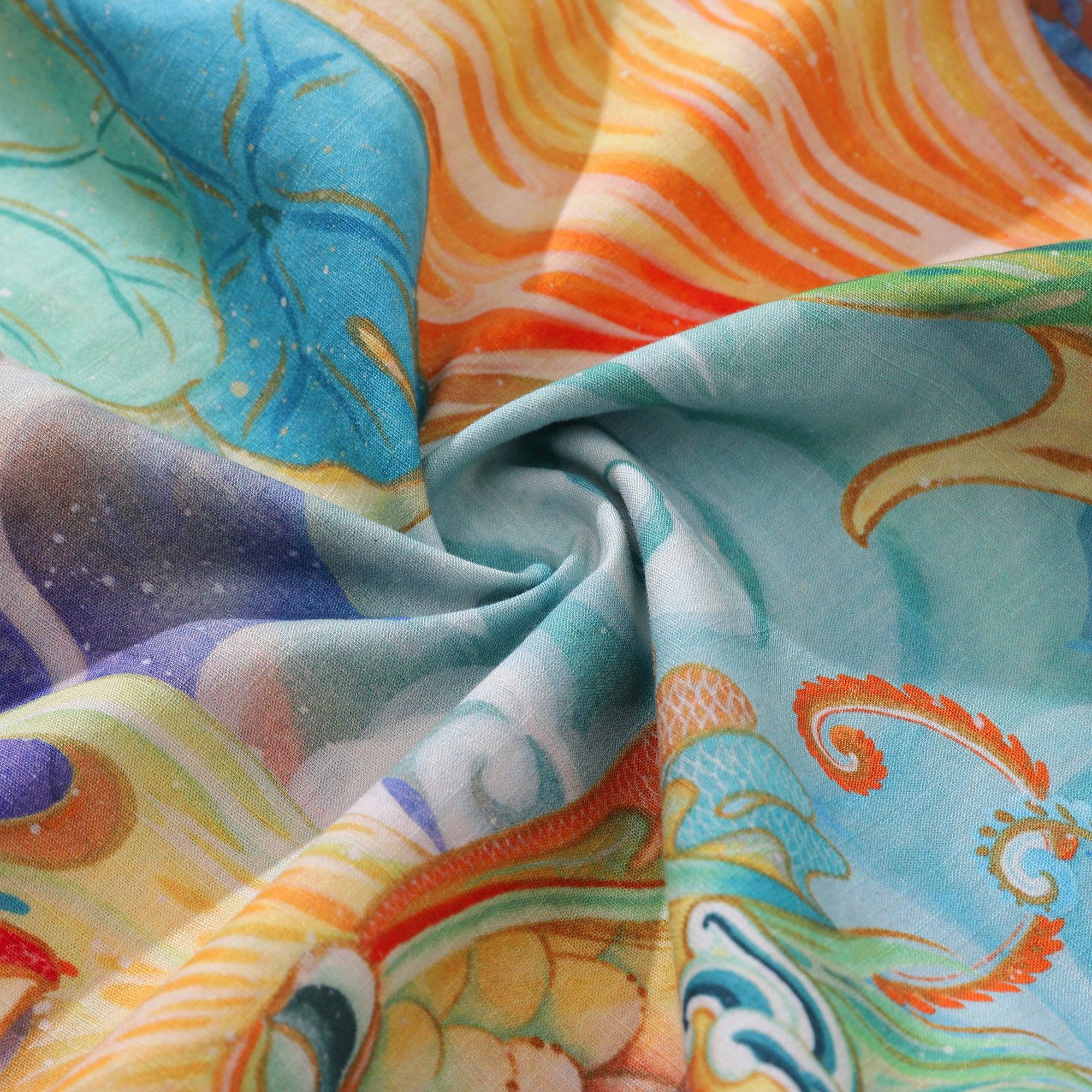 Women's Hawaiian Shirt Wandering Through the Clouds Print Cotton Button-up Short Sleeve