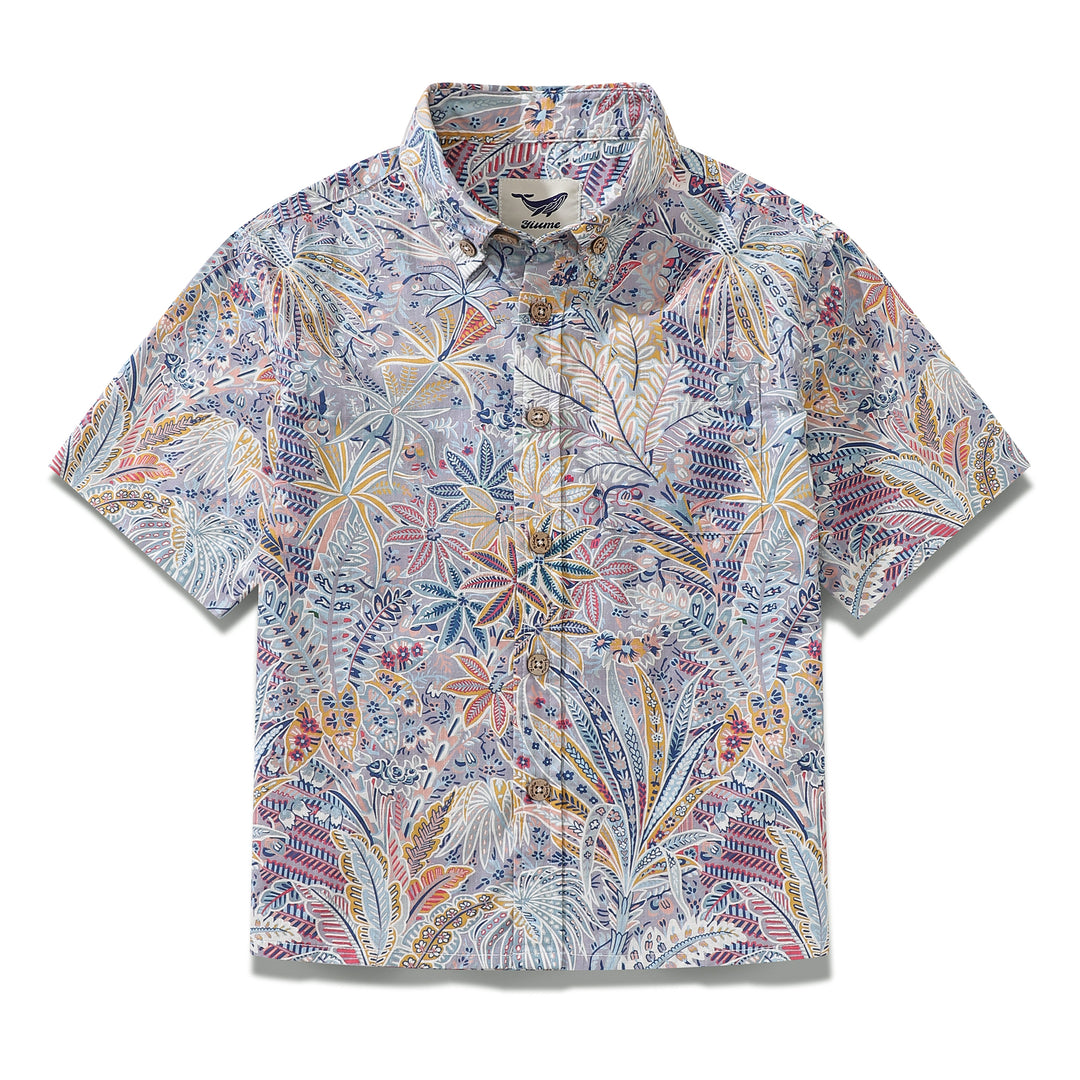 Children's Hawaiian Shirt Tropical Palm Tree Print Cotton Button-down Short Sleeve Jungle Youth Shirt