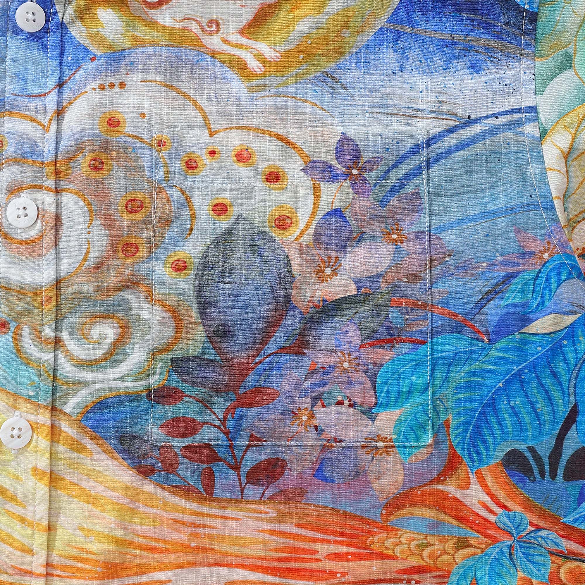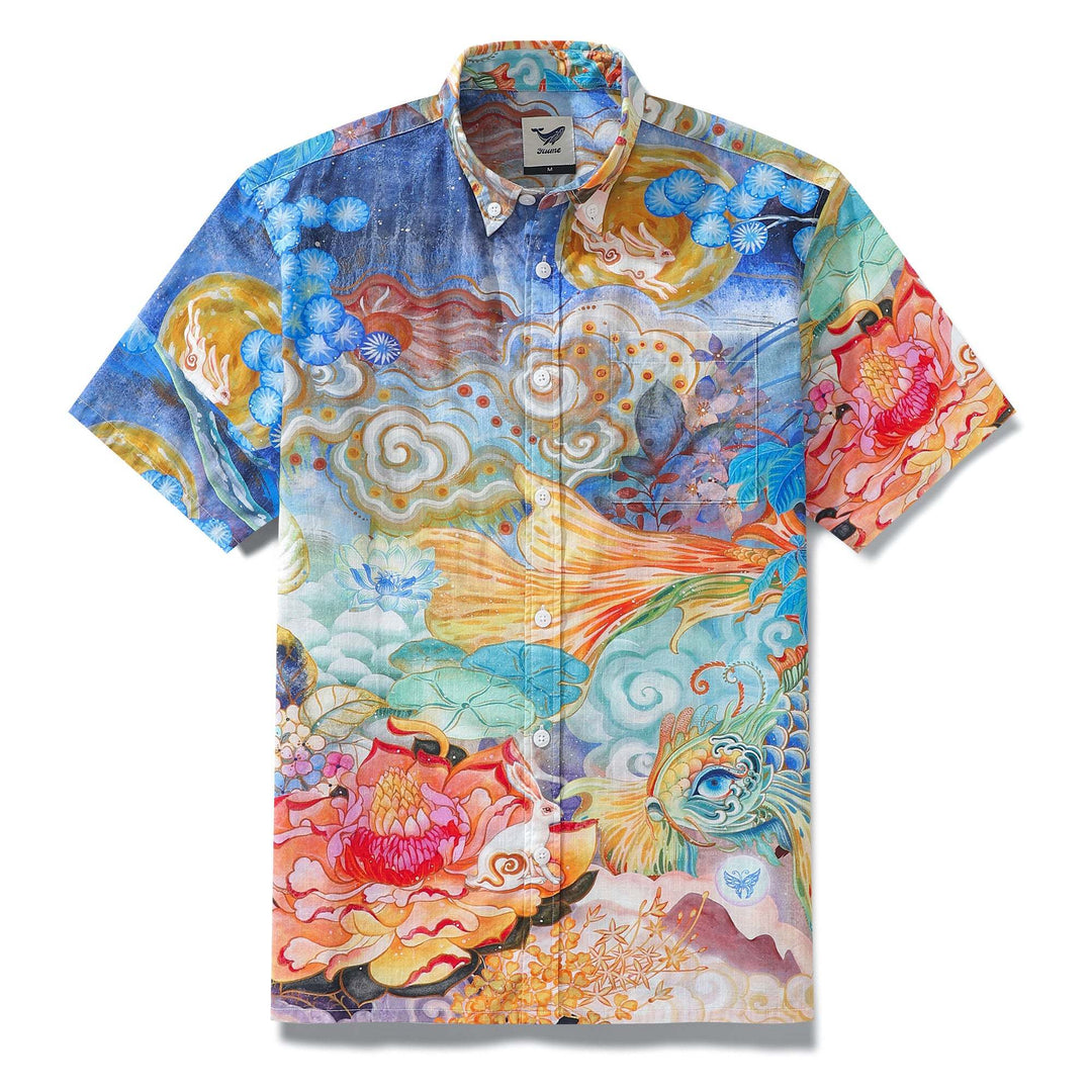 Yiume Herren Designer Hawaiian Shirt Wolkenwandernder Koi Druck Baumwolle Blau Aloha Shirt