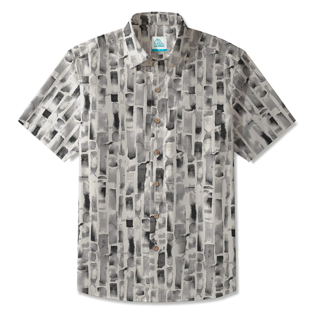 LeosWare® Men's Hawaiian Shirt Short Sleeve Button-up 100% Cotton Gray Aloha Geometric Abstraction