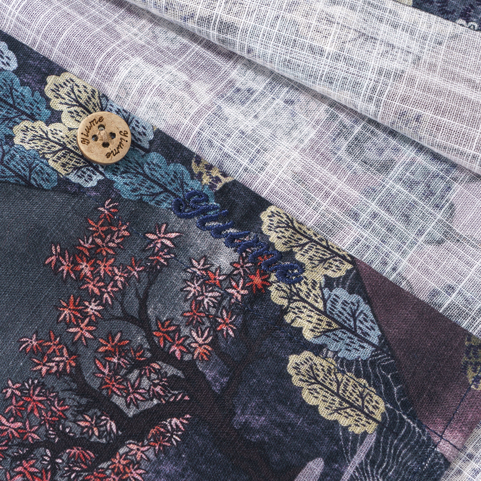 • Print-abgestimmte linke Brusttasche und Knopfleiste