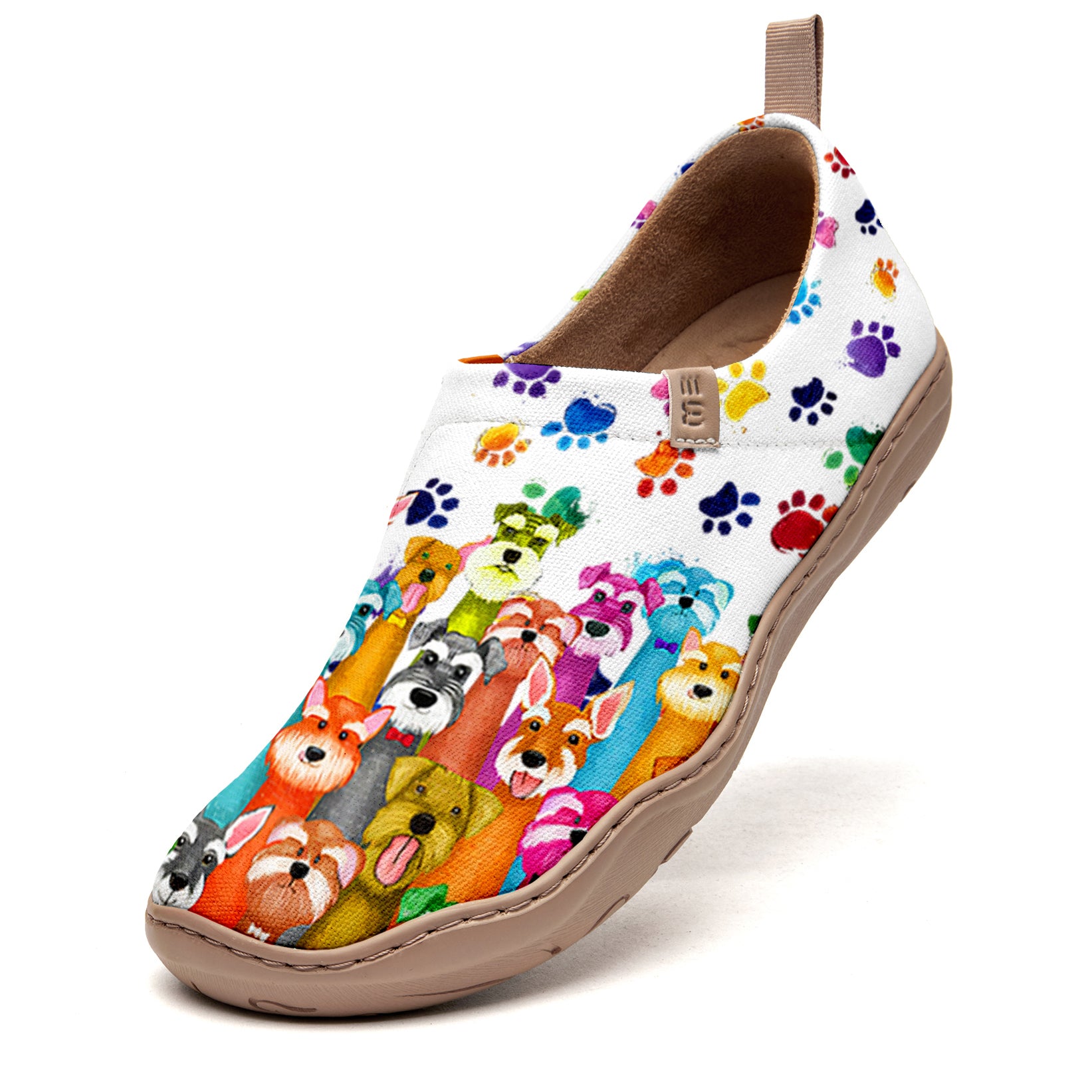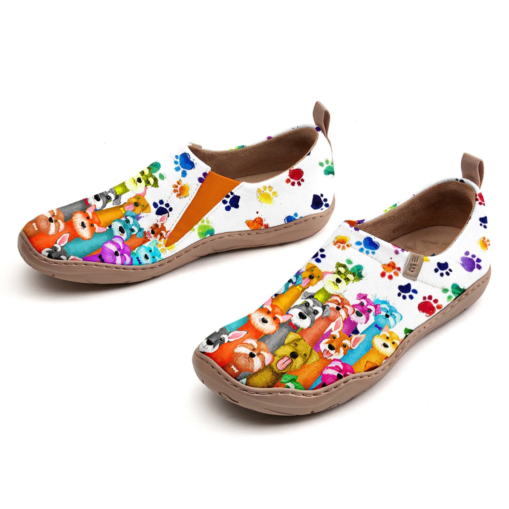 Yiume Frauenkunst Slip-on lässig Canvas Schuhe Welpe Posse bemalt, 100% Baumwoll weißer Hund in lebendigen Farben