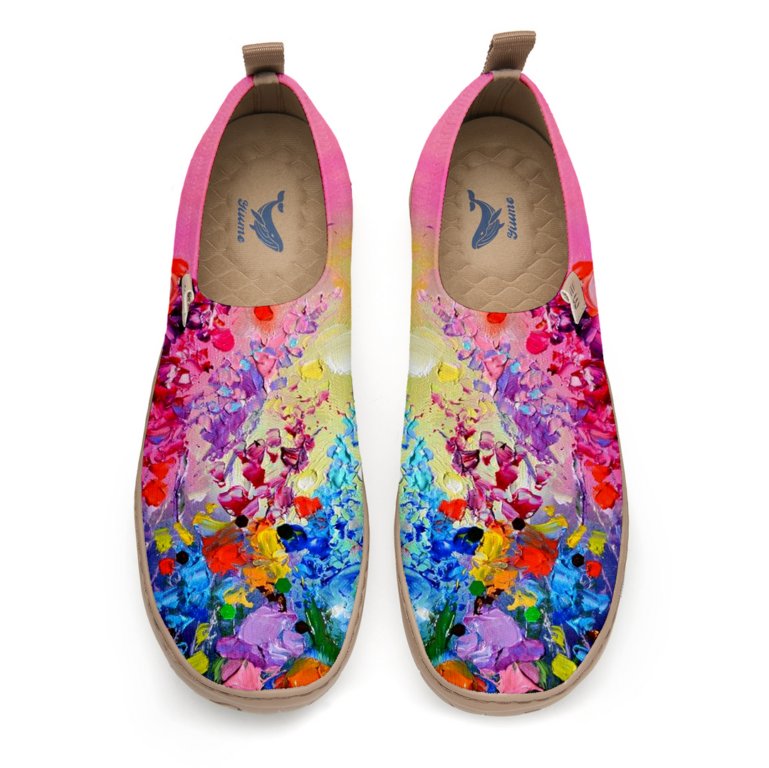 Yiume Frauenkunst Slip-on-Schuhe bequeme atmungsaktive Strick-Freizeitschuhe, Pastellblatt Ozeanblüte