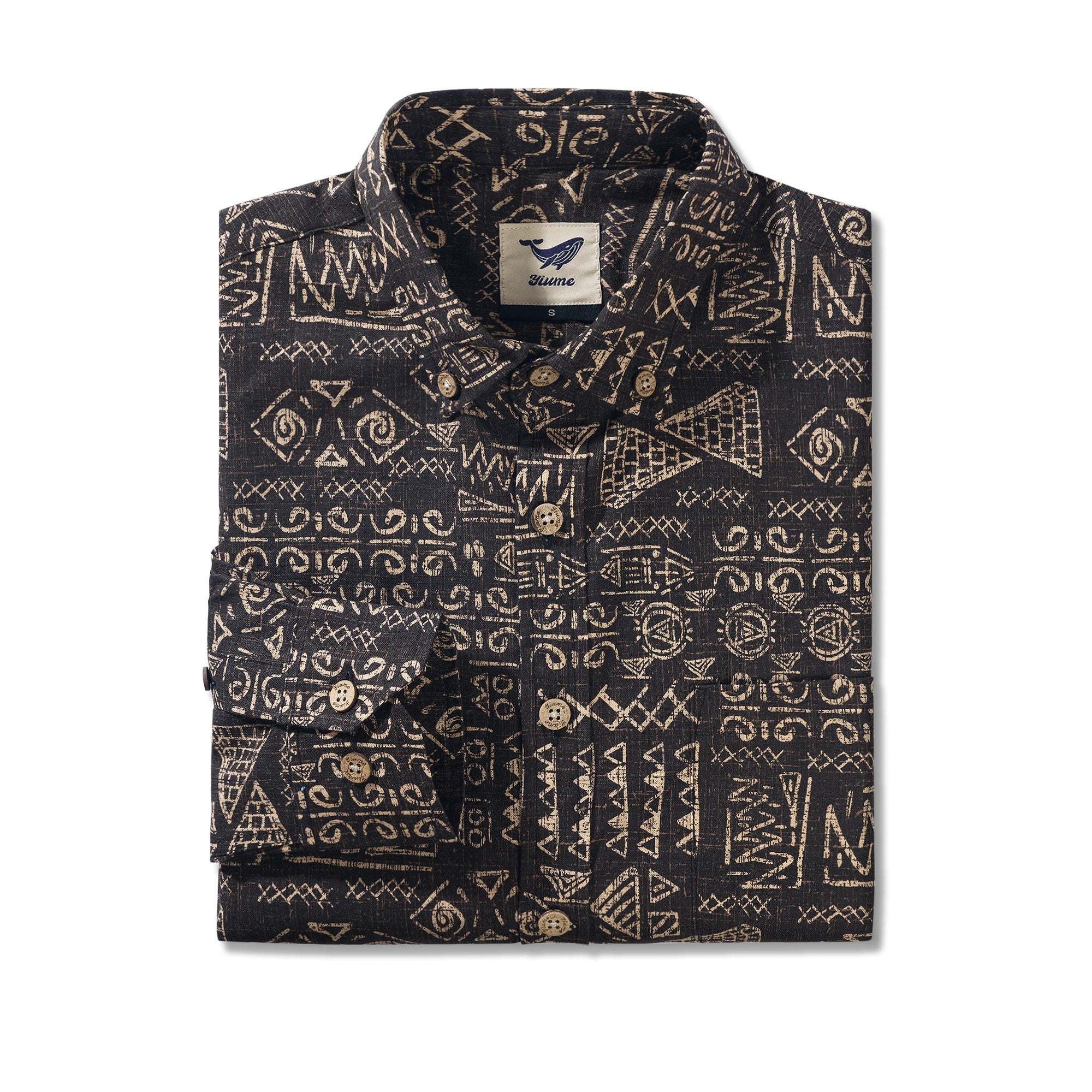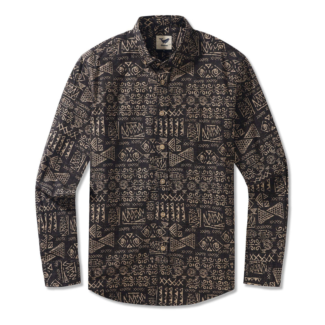Ägyptisches Totem 100% Baumwolle Herren Langarm Hemd mit Knopfleiste Braun Aloha Hawaiian