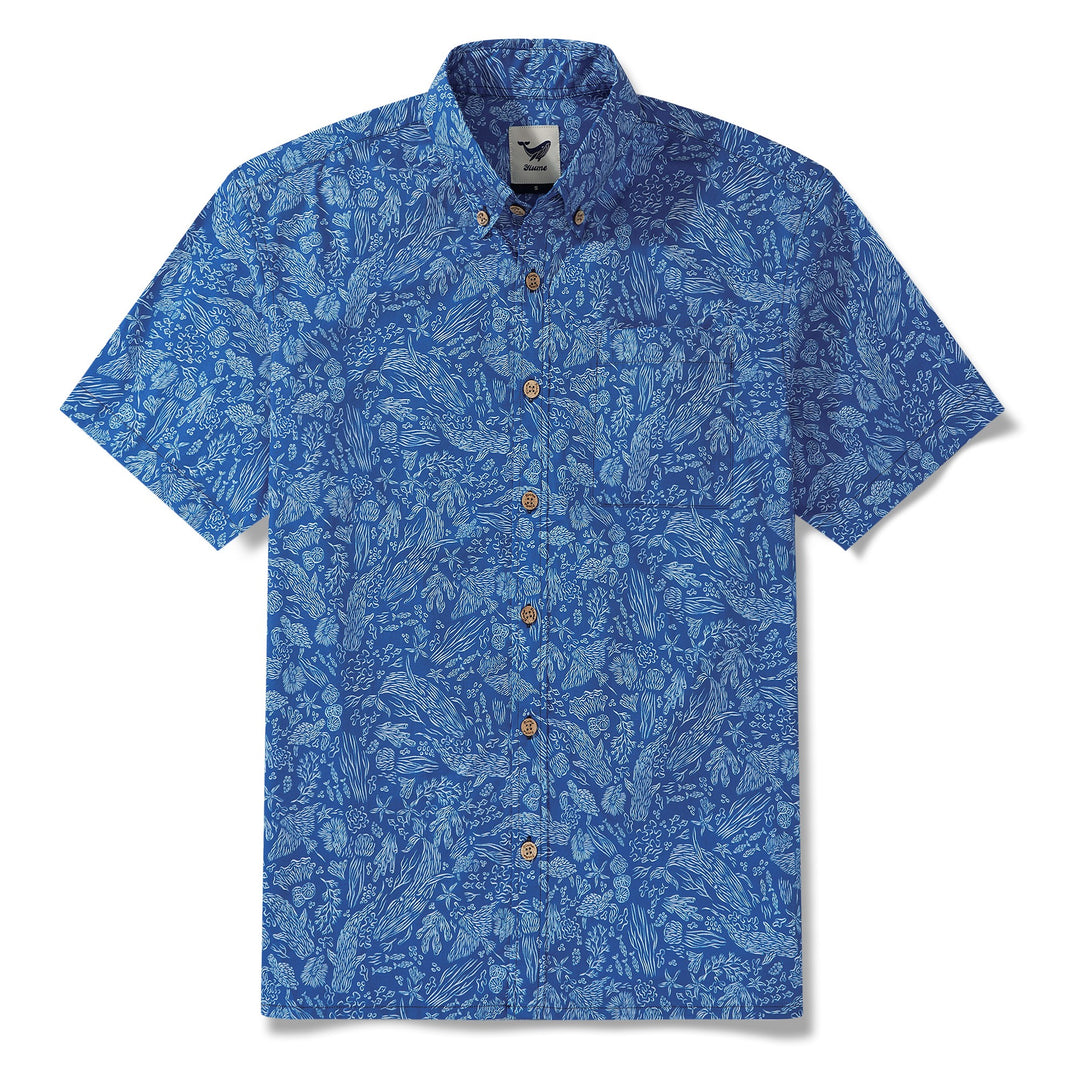 Herren-Hawaiian-Hemd Kurzarm-Button-Down 100% Baumwollblau Aloha All ist Wasser und Wasser ist alles von Circe Oropeza