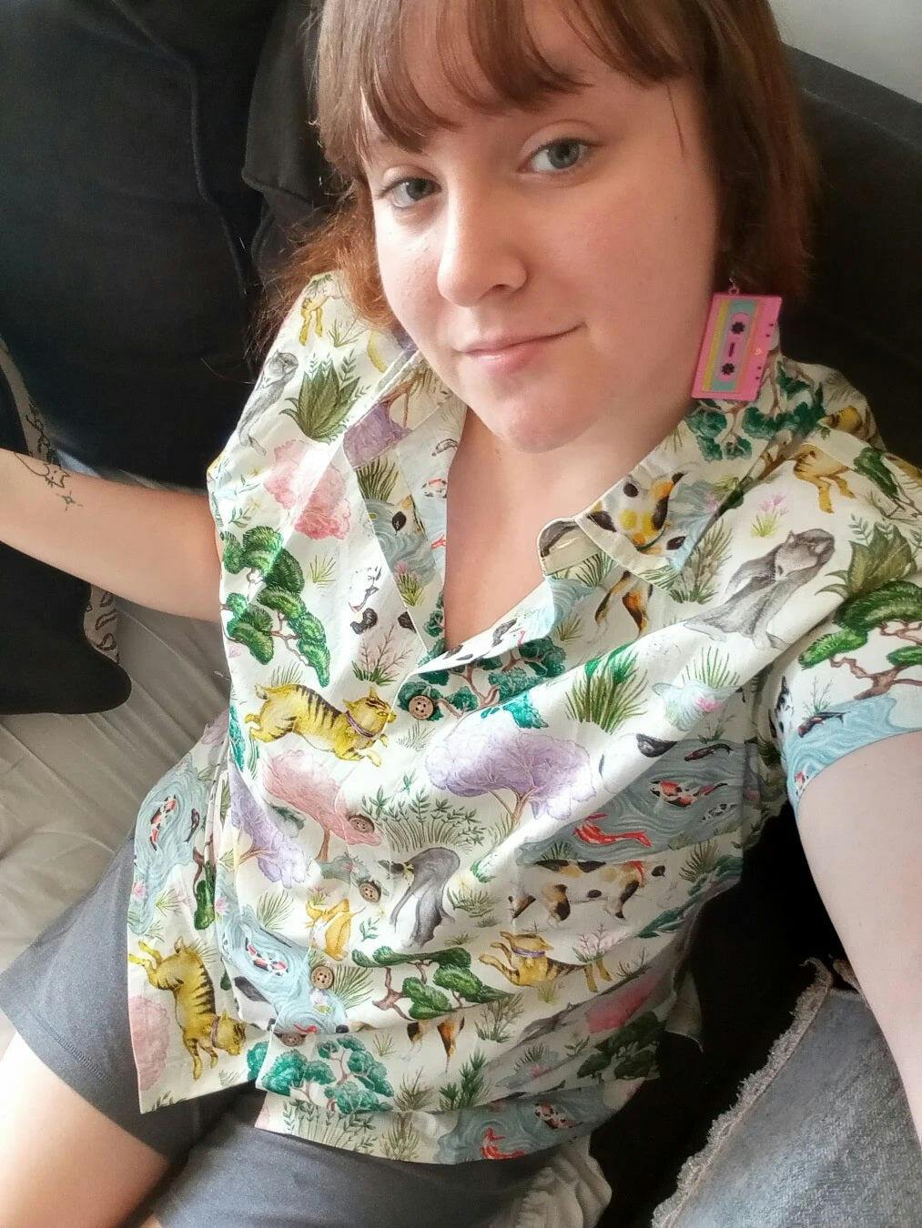 Obsessed with how this shirt hugs my curves without looking boxy. The fabric pattern is so unique and artsy, definitely stands out in a crowd!
