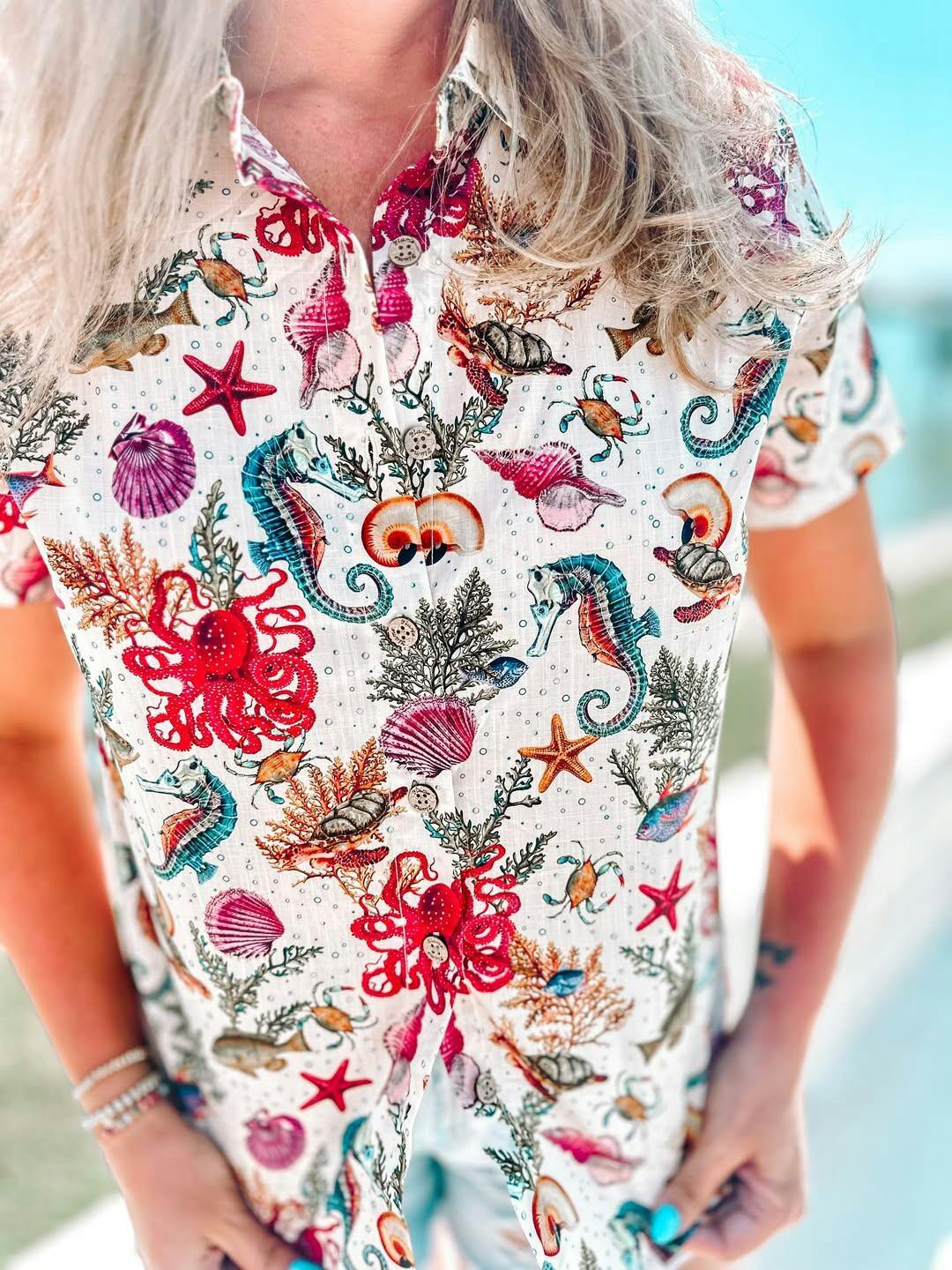 Category: Women's Hawaiian Shirt Short Sleeve Button-up