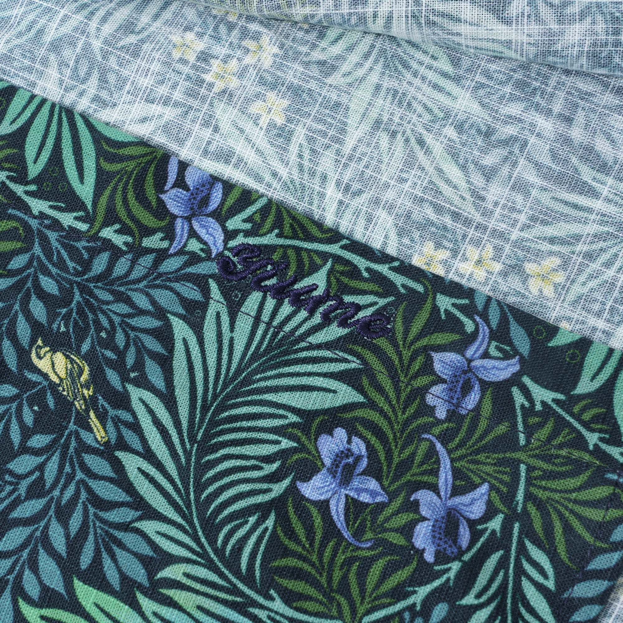 Die Kombination aus Grün und sanftem Gelb verleiht dem Gesamtlook einen vintage Charme. Mit seiner ordentlichen Anordnung ist dieses Design vielseitig genug für Urlaubsbekleidung und geschäftliche Anlässe.
