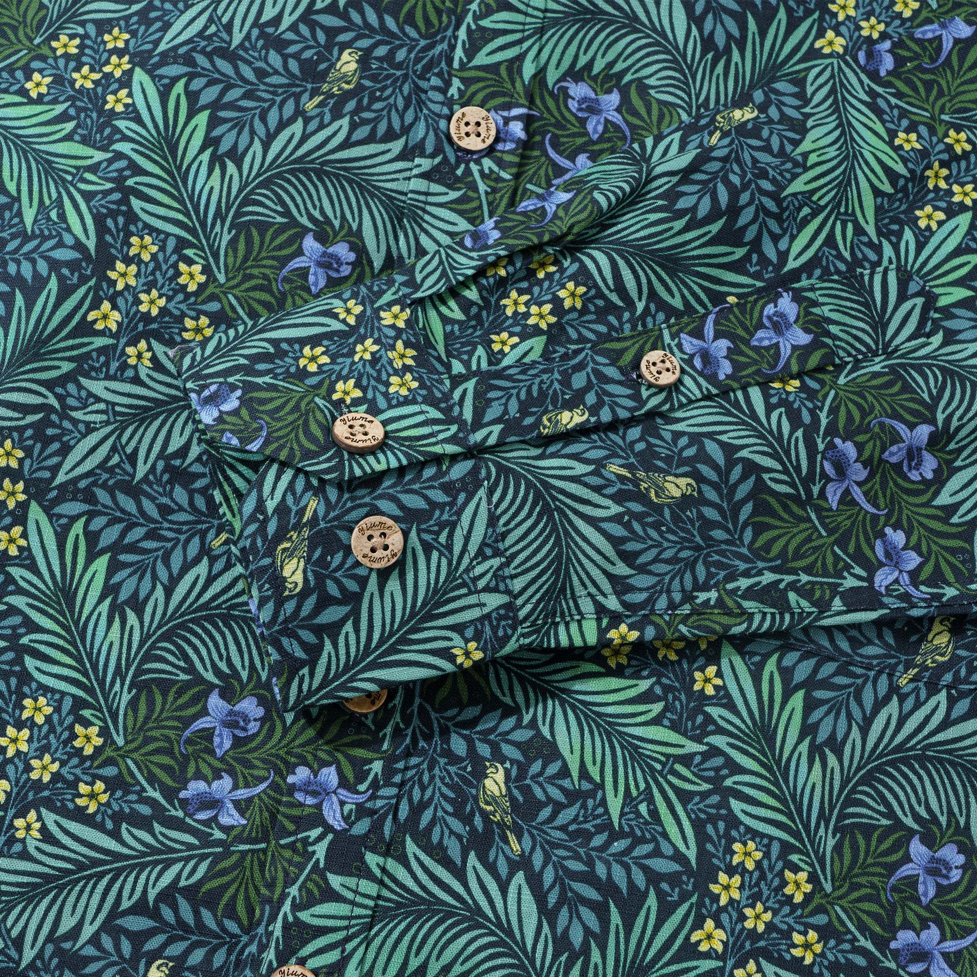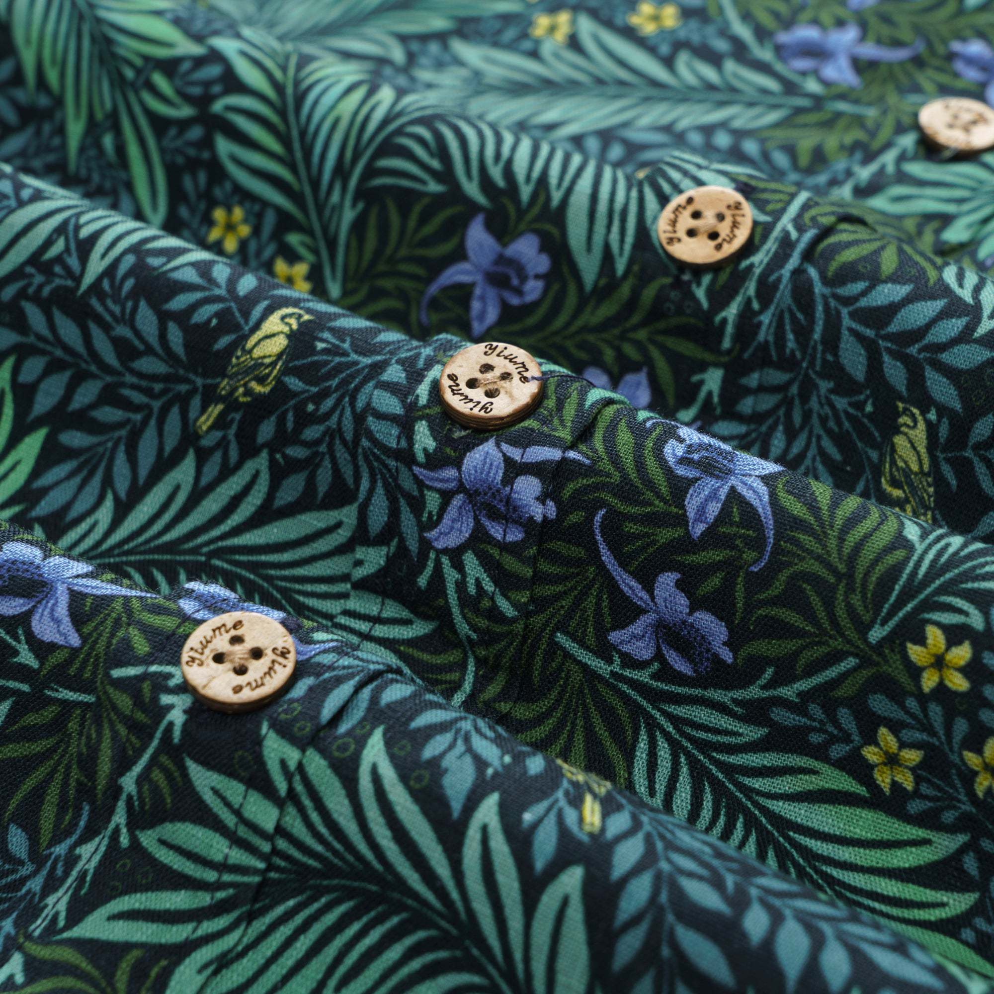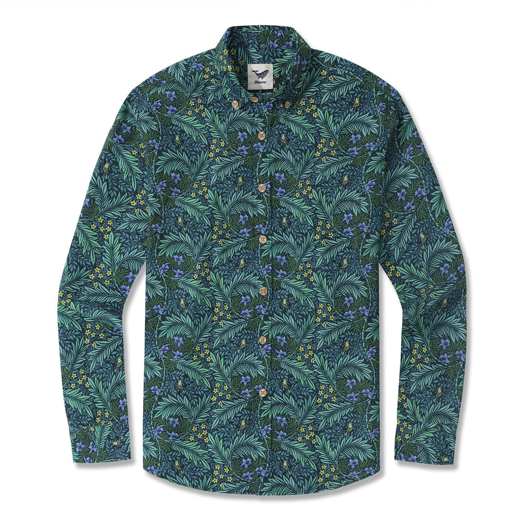 Langarm-Hawaiian-Shirt für Herren Forest Mist 100% Baumwolle Knopf-down Aloha-Shirt