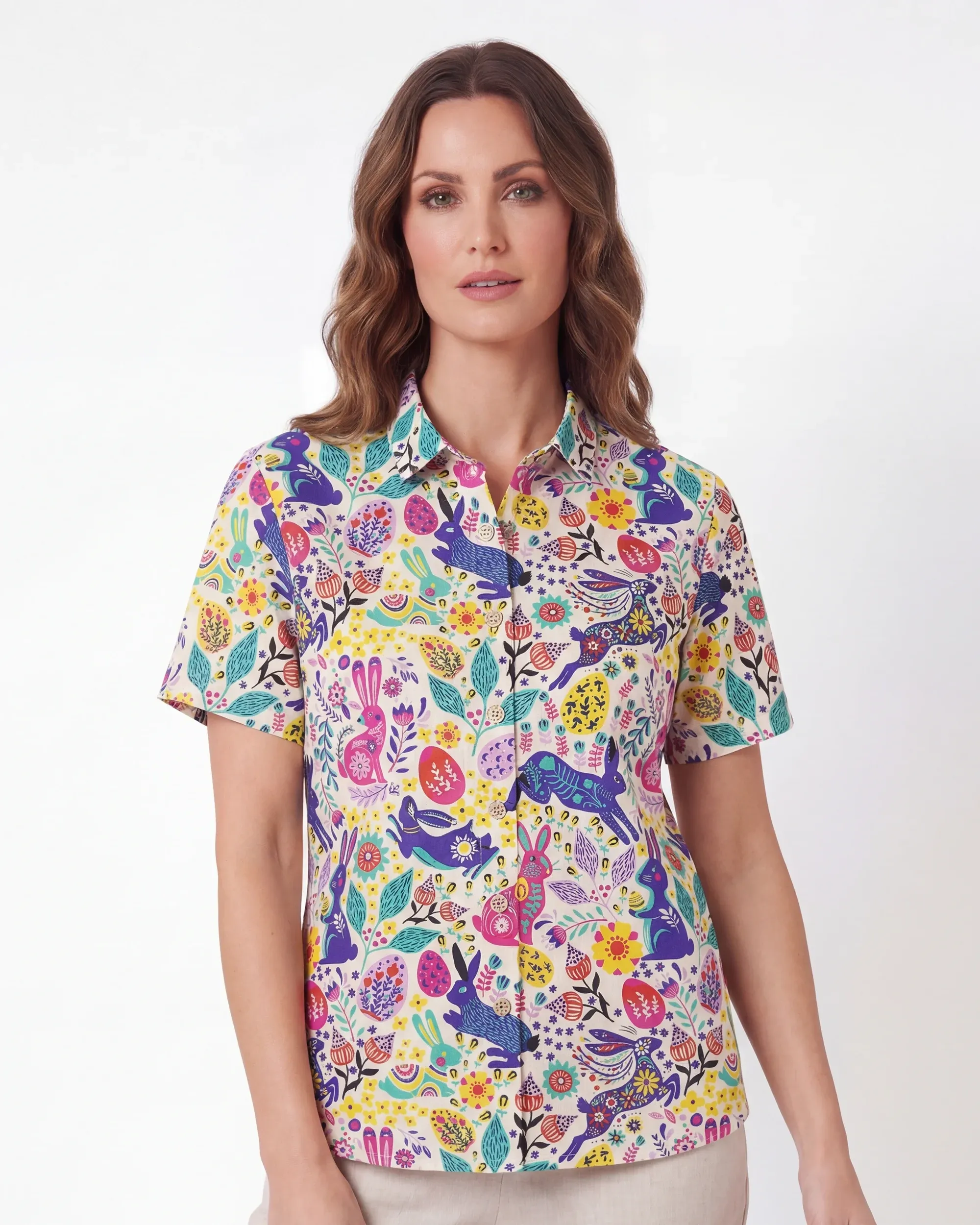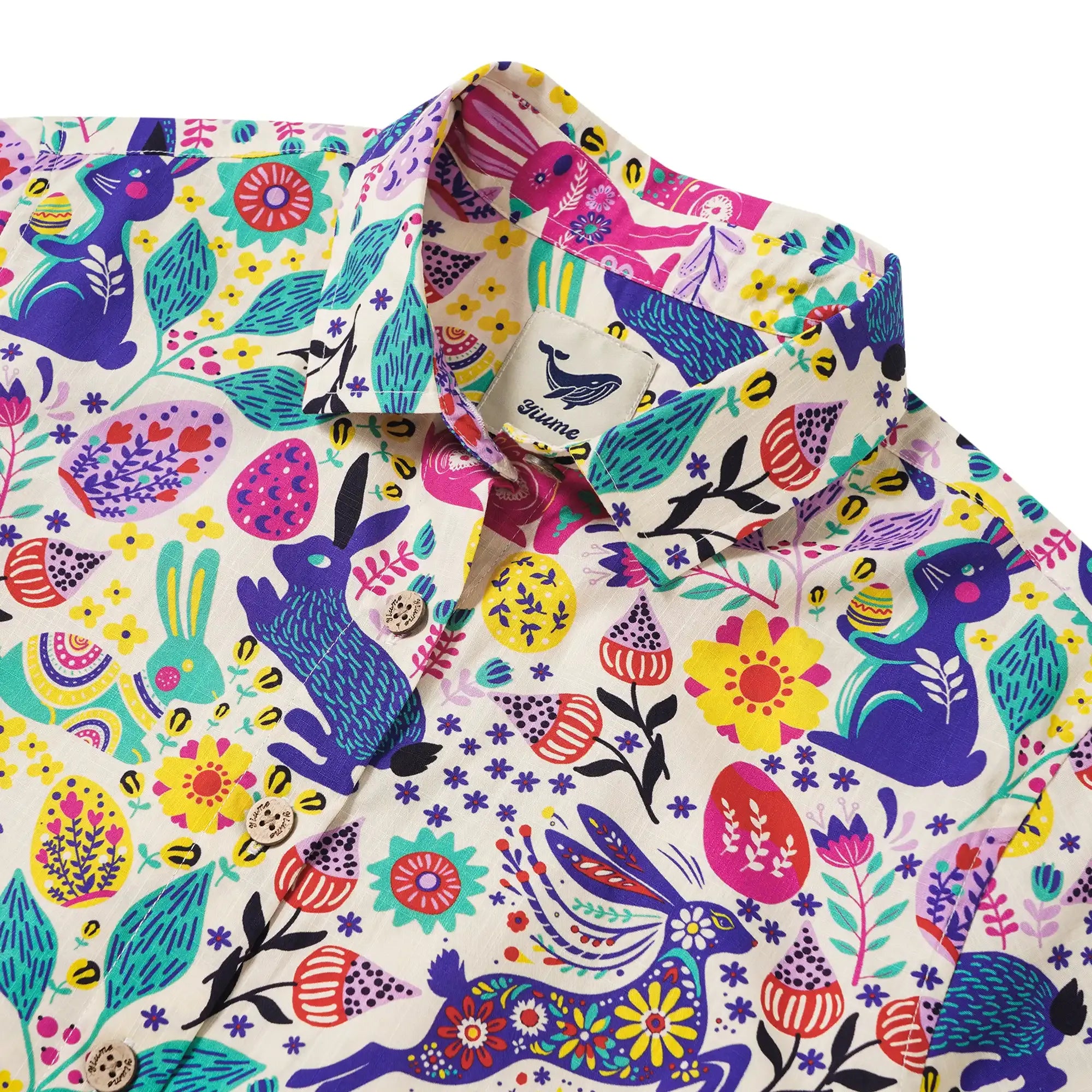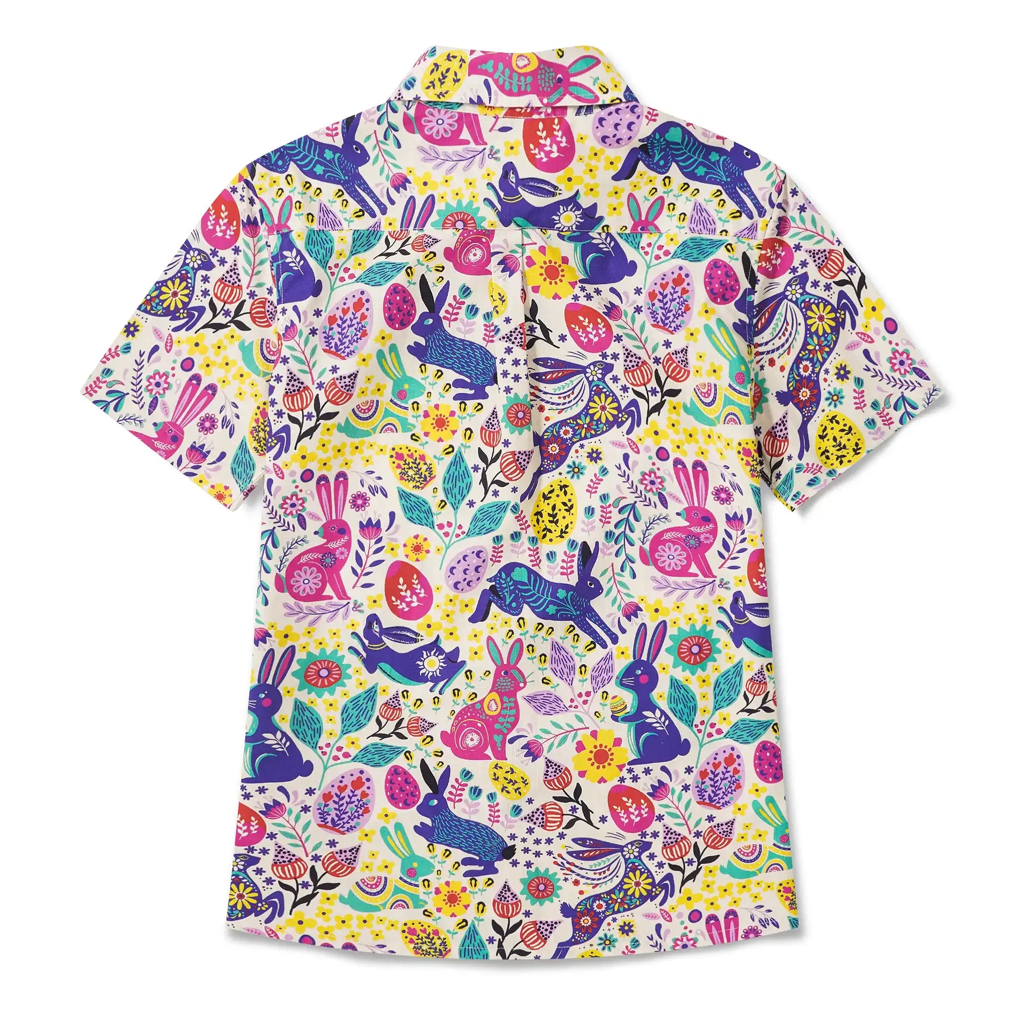 Easter Day Women's Rabbit Hawaiian Shirt Short Sleeve Button-up 100% Cotton Aloha Easter Vibes