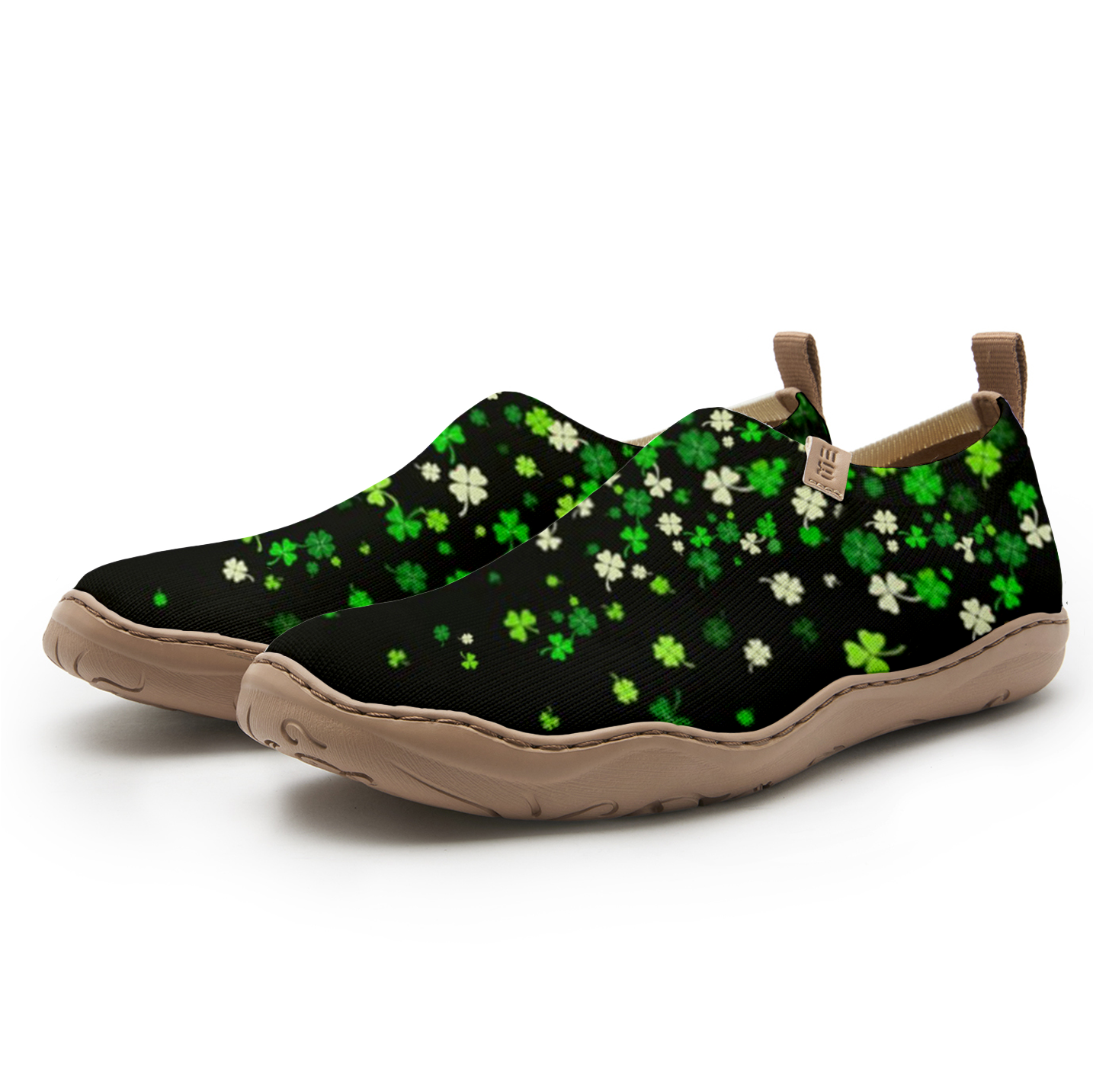 Yiume Women's Art Slip-on lässig Canvas Schuhe St. Patrick's Day Clover Black Malt, 100% Baumwollheiligen Patrick's Day Shamrock