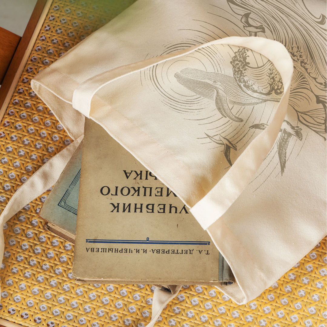 Weave Whale Tote Bag 100% Polyester Brown Seagull Hermit Crab Aloha Whale Whisper