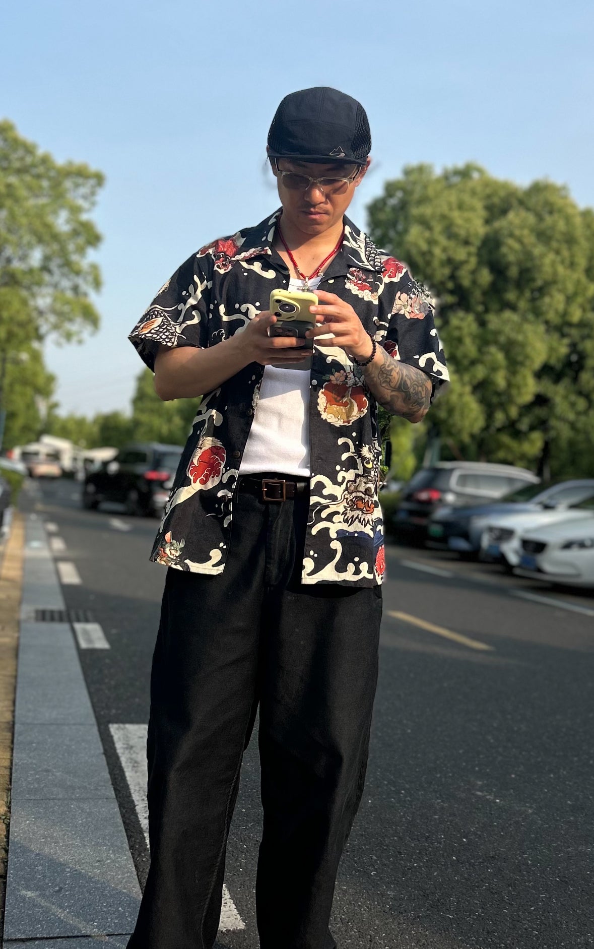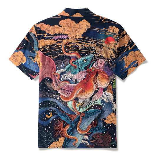 100% Baumwolle Herren Aloha Hemd Japanisches Hawaiianisches Hemd Kurzarm Camp Kragen Hemd