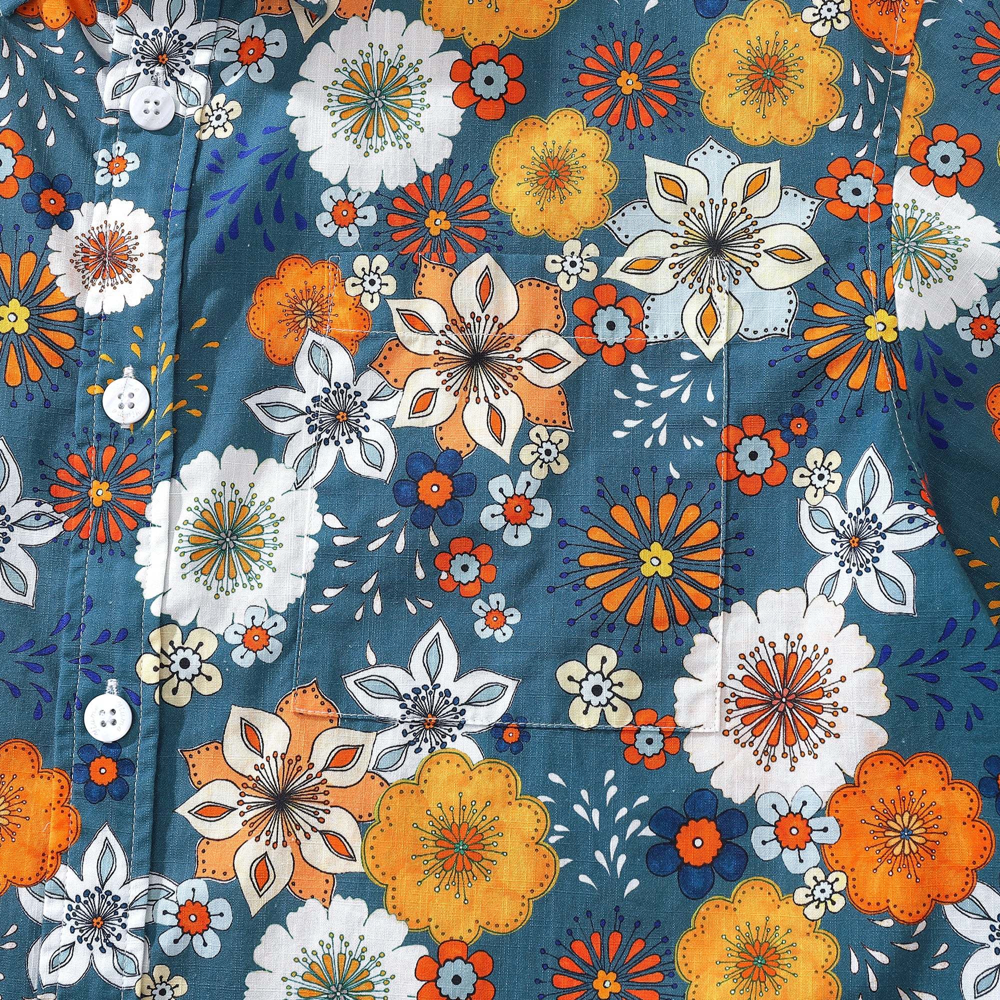 60er Jahre Blumenmuster Hemd Herren Hawaiian Shirt Baumwolle Knopf-down Kurzarm Aloha Shirt