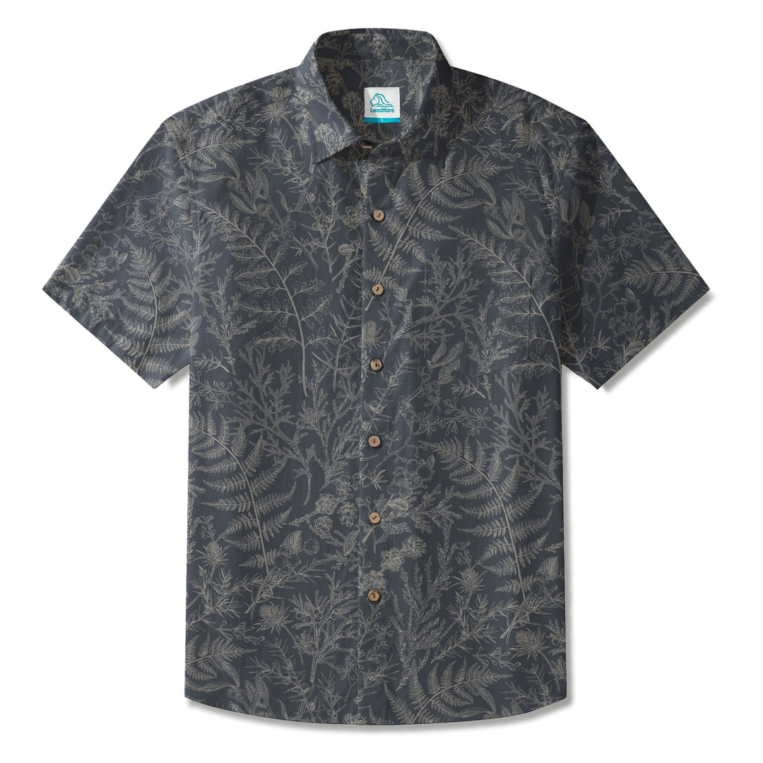 LeosWare® Men's Hawaiian Shirt Short Sleeve Button-up 100% Cotton Blue Aloha Enchanted Fern Grove Journal