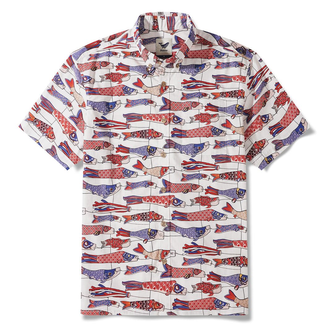 Embrace freedom and vitality with our "Koi Fish in the Wind" shirt. Vibrant East Asian koi patterns in red and blue symbolize resilience and limitless horizons. Capturing nature's energy and a spirit of freedom, this design embodies the fearless pursuit of progress. Ideal for California sunshine or New York street style, this shirt effortlessly elevates your signature look with a sense of liberation.
