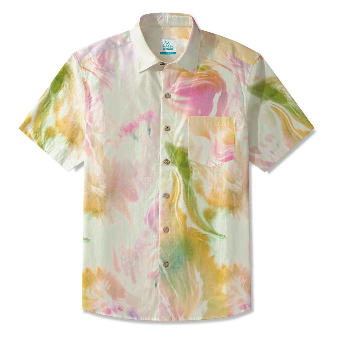 LeosWare® Men's Hawaiian Shirt Short Sleeve Button-up 100% Cotton Red Aloha Dreamy Macarons