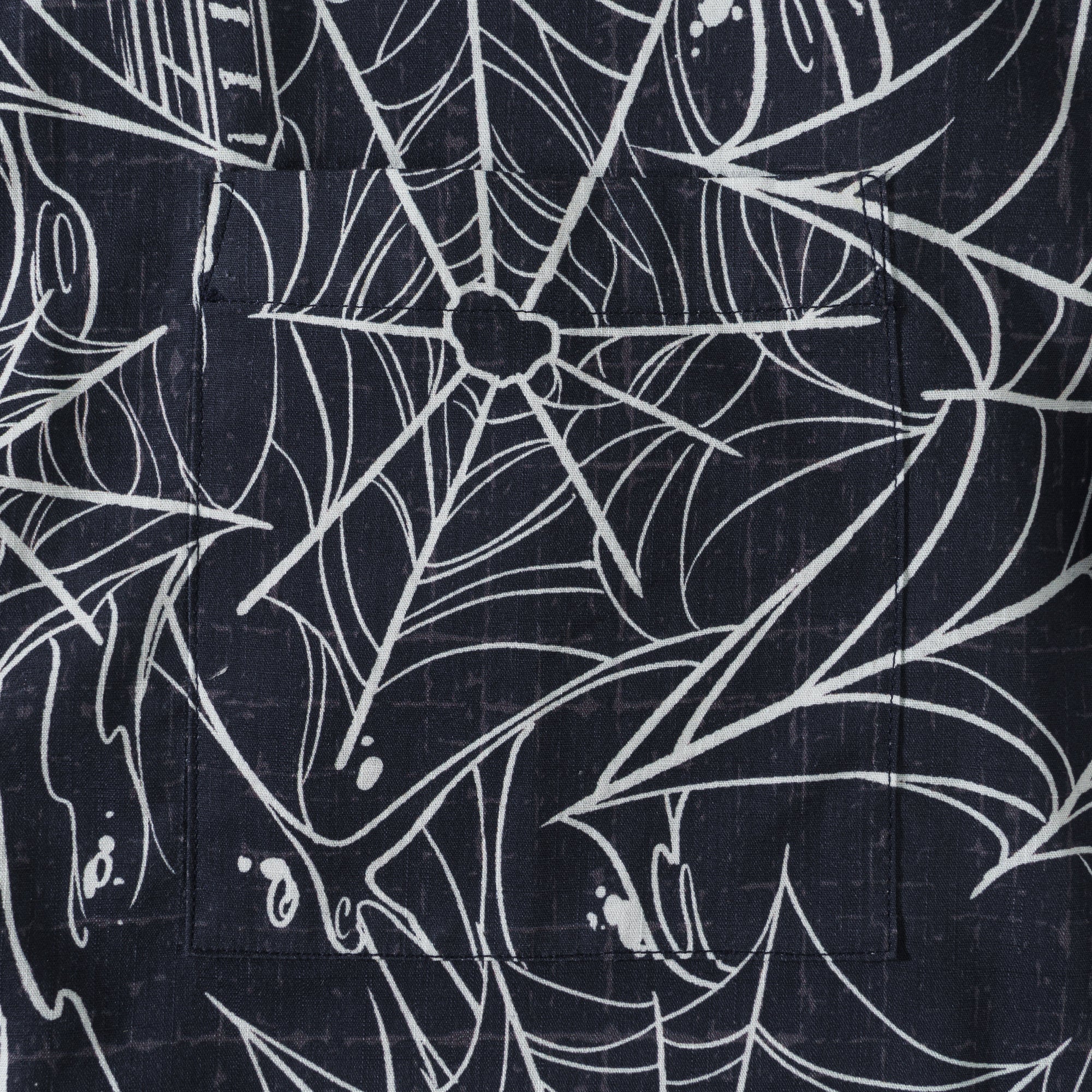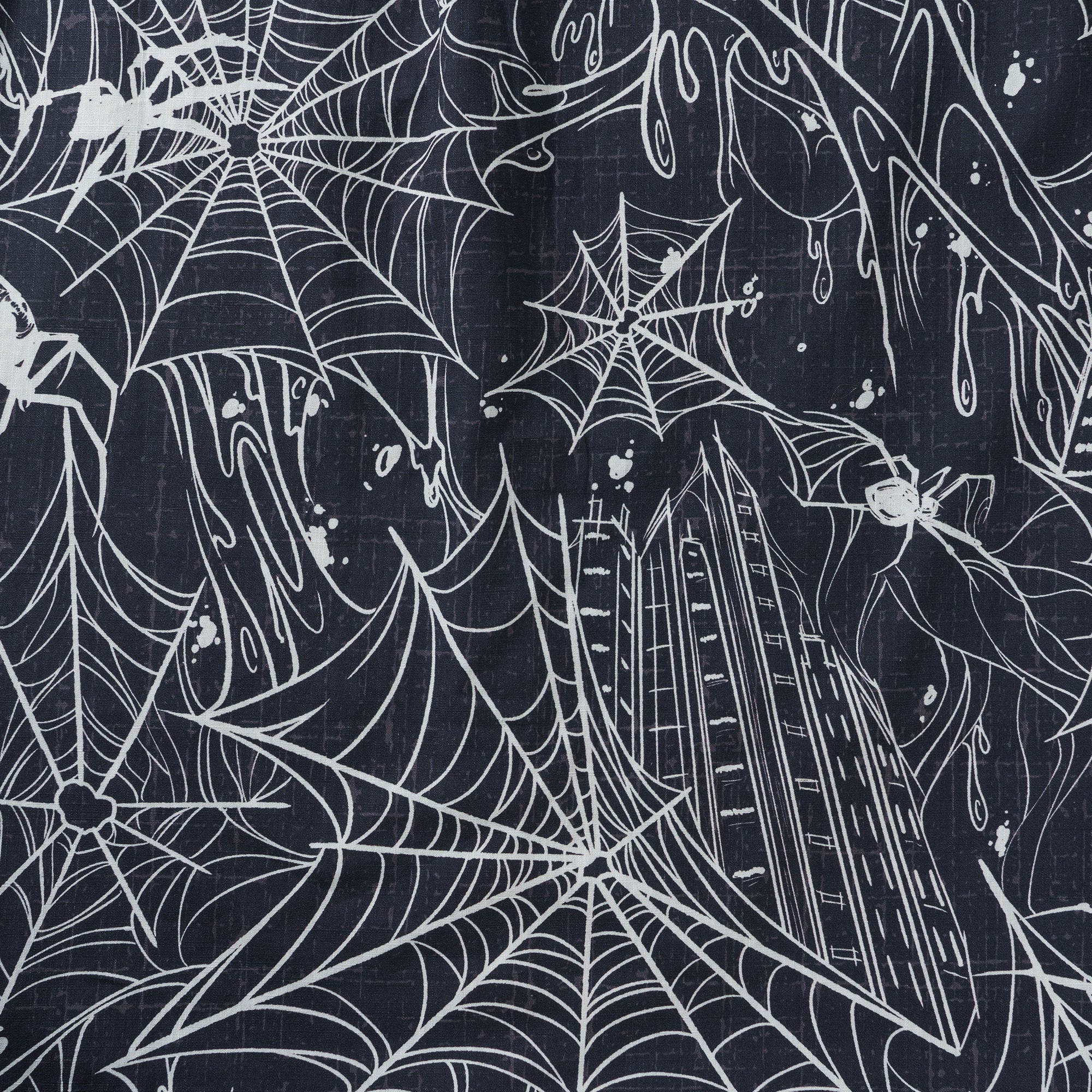 Spinnweben bedecken die hochragenden Gebäude, kunstvoll miteinander verbunden, mit unzähligen Spinnen, die darauf lauern, dass ihre Beute in ihre Falle fällt. Das Design integriert Elemente von Spinnweben, wobei jede kleine Bewegung in der Stadt sie alarmiert, als ob sie die Stadt stillschweigend wie Helden bewachen.