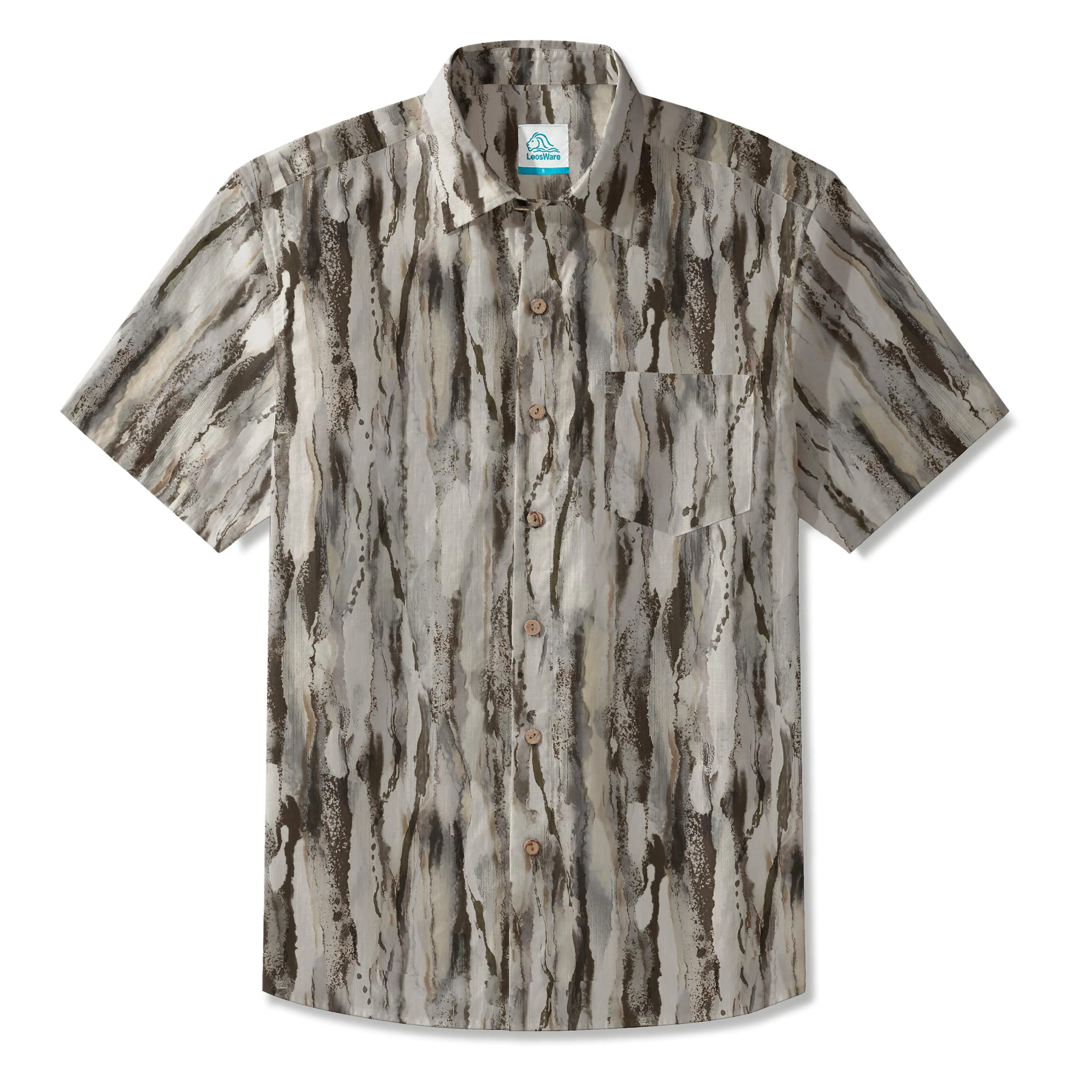 LeosWare® Men's Hawaiian Shirt Short Sleeve Button-up 100% Cotton Brown Aloha Minimalist Abstract Rhythm