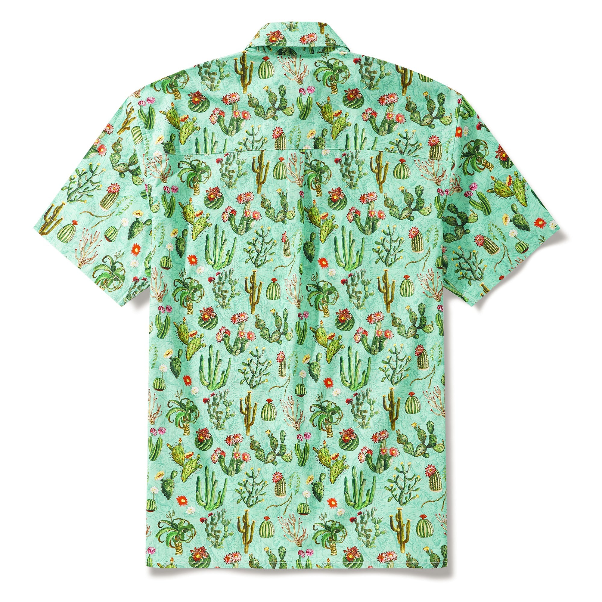 Kaktushemd für Männer grünes Hawaiian-Hemd Kurzarm Button Down Western Cowboyhemd