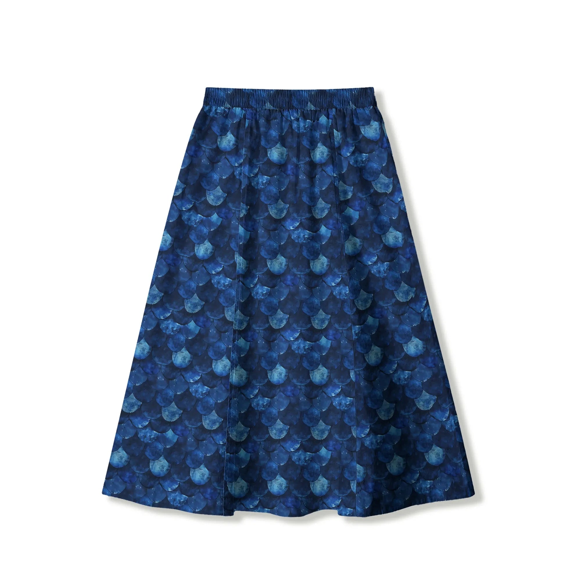 Women's Casual Skirt Elastic Waist with Pockets 100% Cotton Blue Aloha Deep Sea Dragon Scales