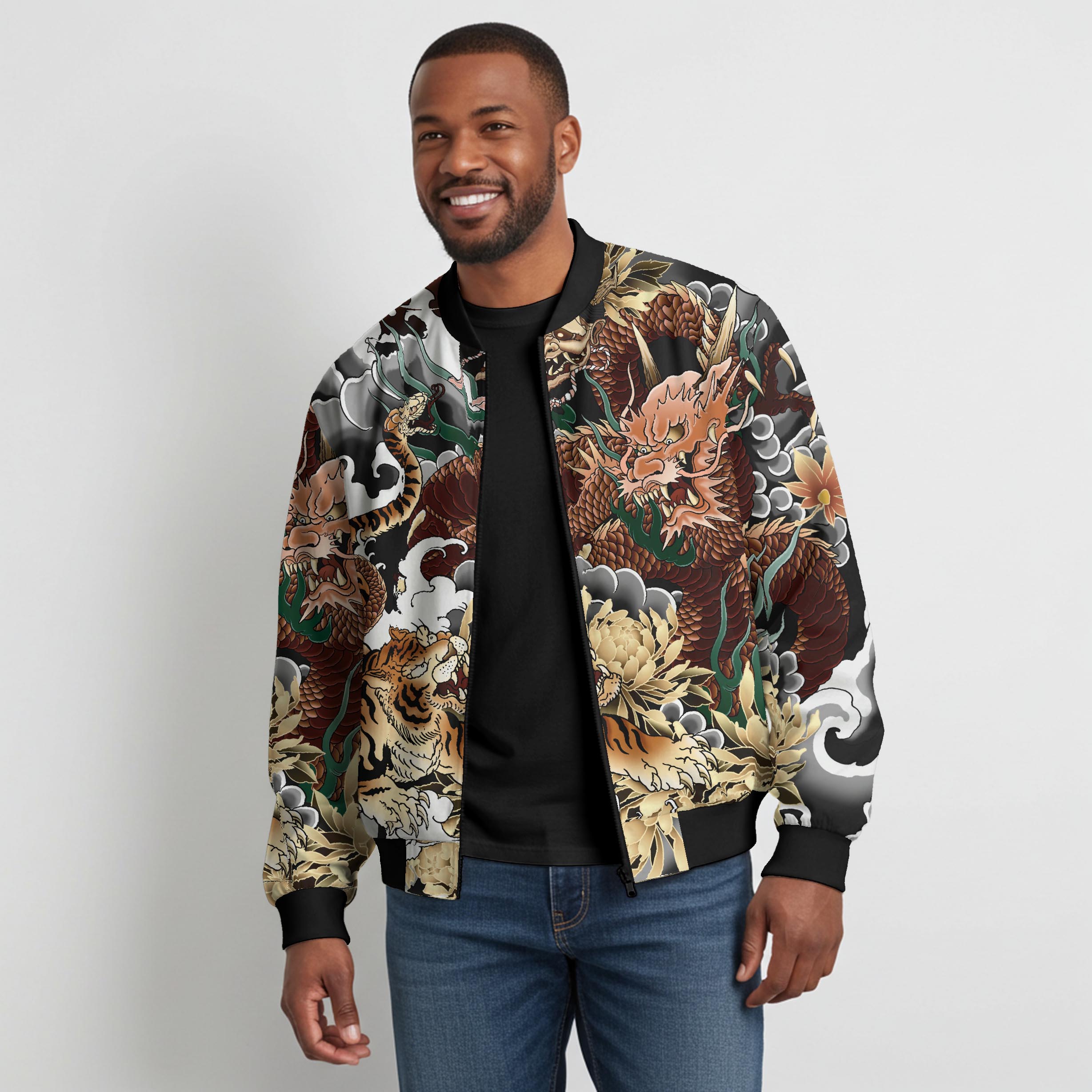 Baseball Jacket/Outerwear 100% Polyester White Men/Women Unisex Aloha Battle Of The Dragons And Tigers