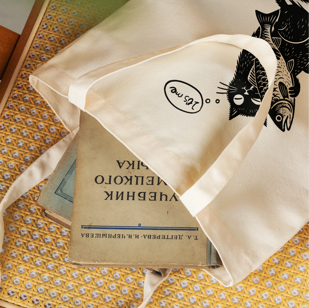 Black Cat Fish Bag 100% Polyester Black Aloha Cat Love Fish