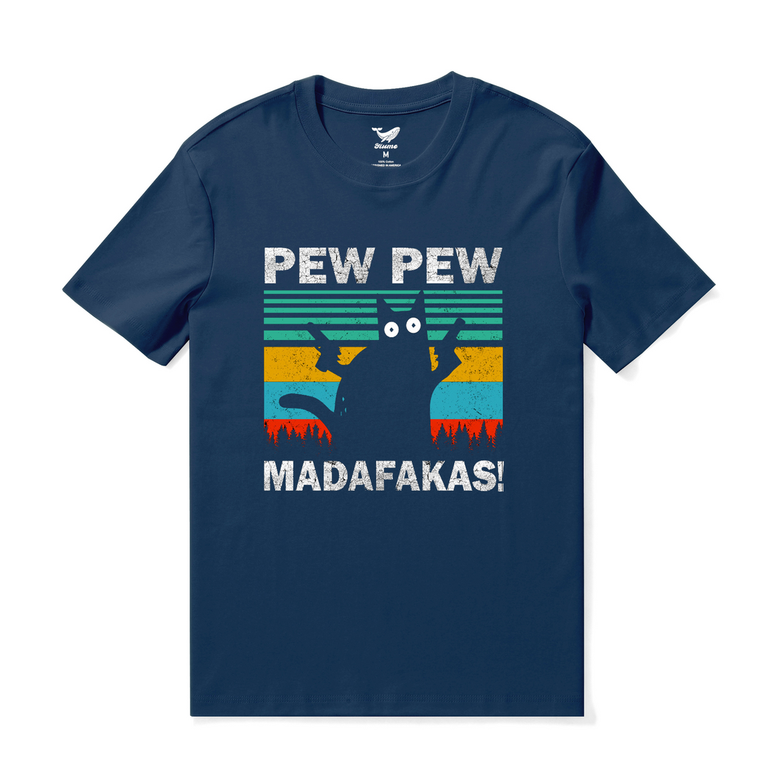 Hawaiian T-Shirt für Männer Pew Pew Madafakas Katzen T-Shirt Rundhals 100% Baumwolle - NAVY BLAU