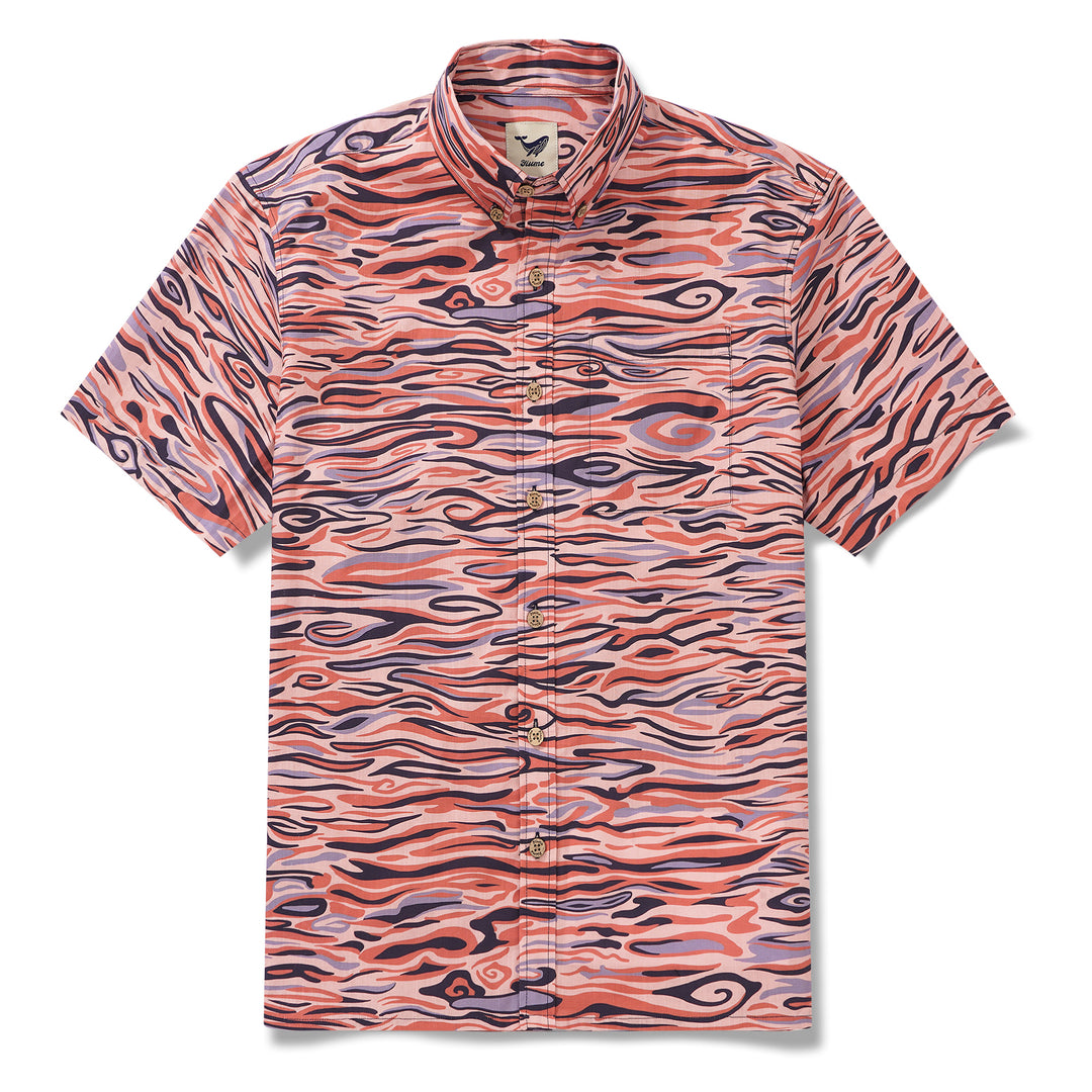 Dieses auffällige hawaiianische Hemd besticht durch eine auffällige Farbpalette in Rot und Blau - feuriges Rot trifft auf tiefes Ozeanblau für einen dynamischen Kontrast. Filigrane, östlich inspirierte Muster ziehen sich über den Stoff, mit fließenden Wolkenmotiven und glücksbringenden Symbolen, die Jahrhunderte von Tradition tragen. Sorgfältig gestaltete Details vereinen modernen Stil mit zeitloser Eleganz und machen es zu einem Statement-Stück, das Insel-Vibes mit anspruchsvollem Charme kombiniert. Tragen Sie es für mühelosen Stil - sei es beim Spaziergang am Strand oder um bei Ihrem nächsten Treffen ein Statement zu setzen.